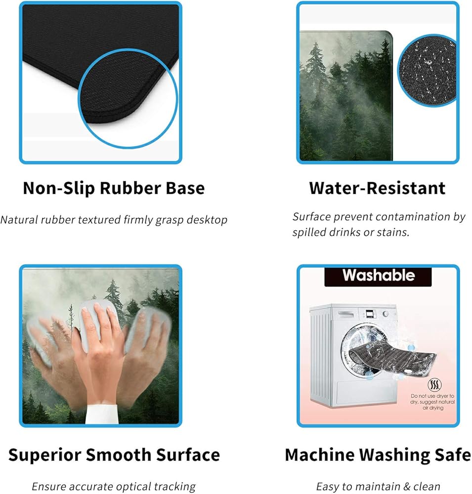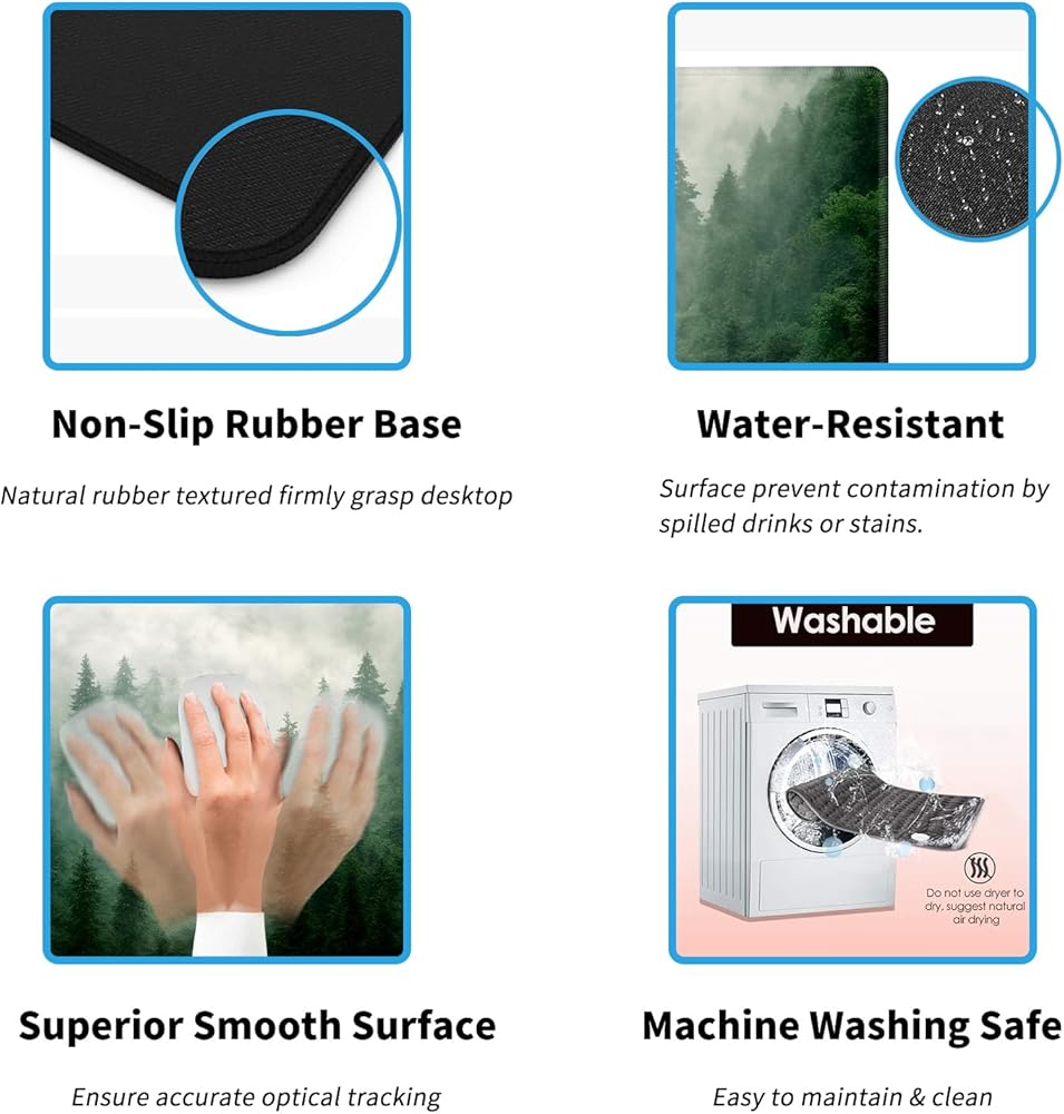 【HD Print】- All handpicked designs adopt advanced HD printing technology, not fade, not wrinkle. Providing you high quality extended mouse pad with bright colors. You will be impressed by this large mousepad