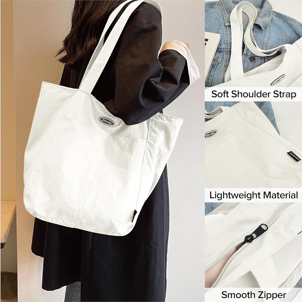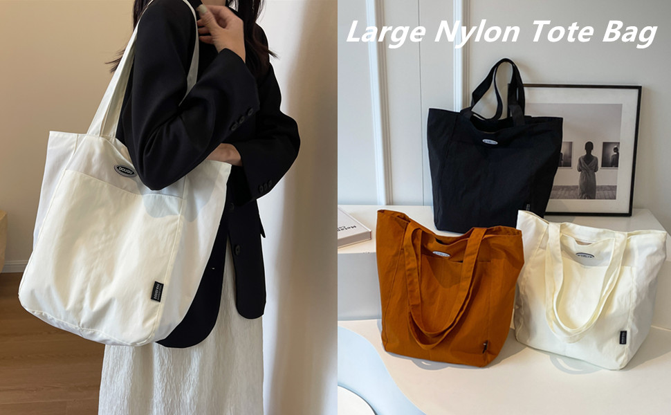 →【 Lightweight Nylon Tote Bag 】Made of high quality nylon fabric,lightweight but durable.Just 0.19kg/0.42lb,no another burden when going out to carry essentials.Zipper closure to protect your belongings safe