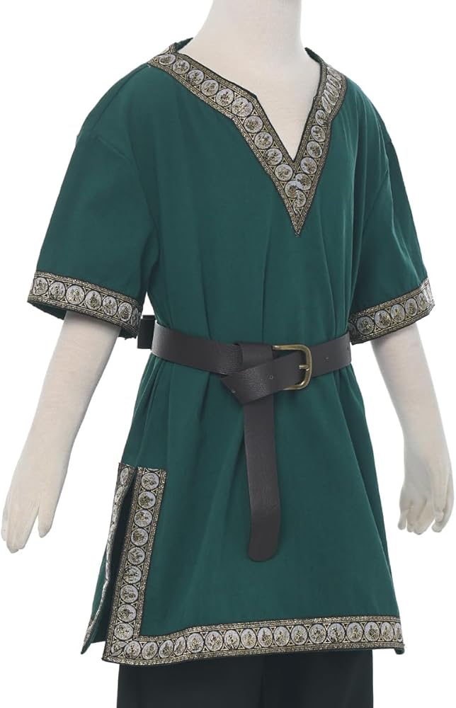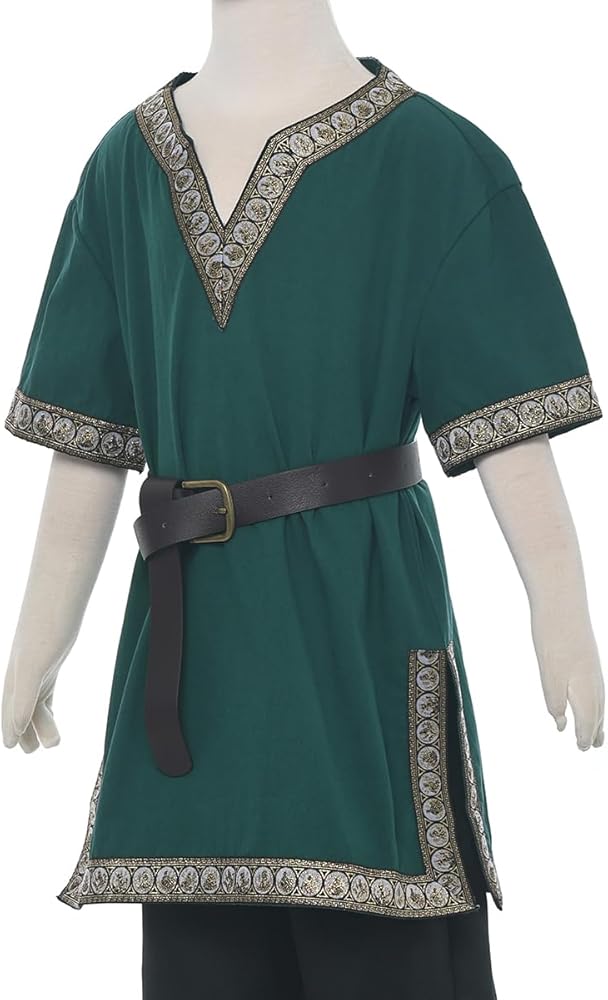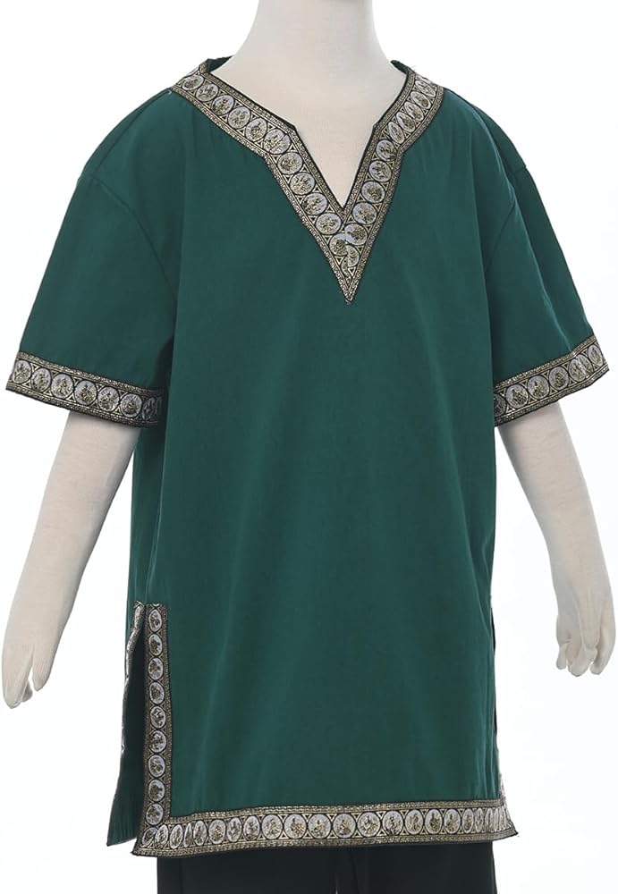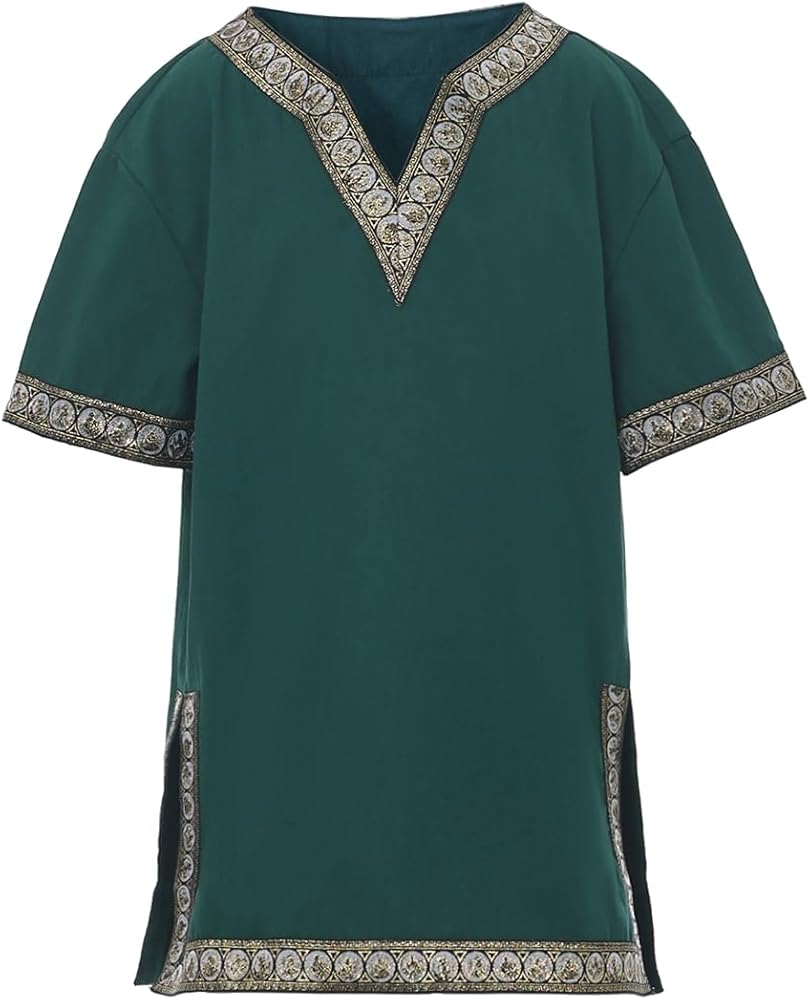 Boys Renaissance Viking Pirate V Neck Shirt Medieval Knight Costume Tops