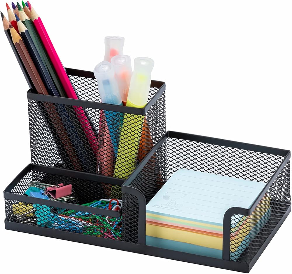 【تصميم من 5 أقسام】: يأتي حامل أقلام الرصاص للمكتب مع 5 مساحات، رائعة وفريدة من نوعها، ويمكنه بسهولة فصل وتخزين العناصر المختلفة على الطاولة. منظم سطح المكتب هذا صغير الحجم وذو سعة كبيرة، وهو مناسب للأقلام وأقلام الرصاص وأقلام التحديد وأقلام التحديد والمساطر والدباسات ومحركات الأقراص المحمولة والممحاة ومشابك الورق.