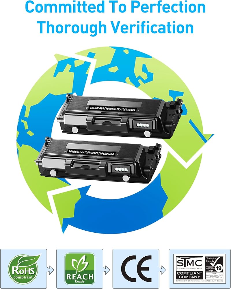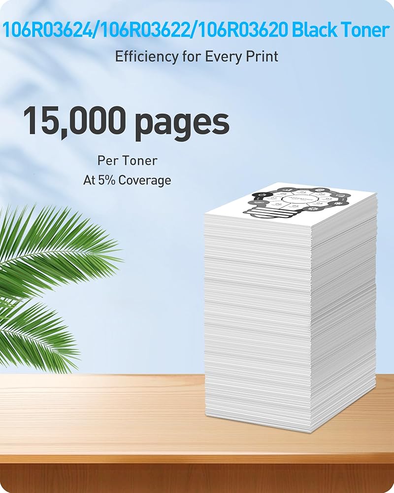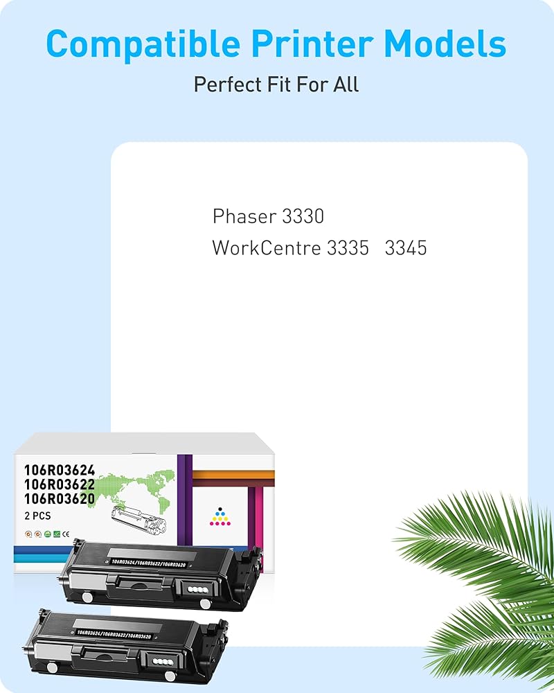 2-Pack Compatible 106R03624 106R03622 106R03620 Toner Cartridges Replacement for Xerox Phaser 3330 3330DNI WorkCentre 3335 3345 3335DNI 3345DNI Printer – Extra High Yield 15,000 Pages