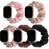 Simpeak 5Pack Elastic Fabric Scrunchie Band Compatible with Apple Watch 45mm 44mm 42mm, Women Girl Strap Replacement for iWatch Series 9 8 7 6 SE 5 4 3, Large, Black/Leopard/Cow/Red Flower/Floral