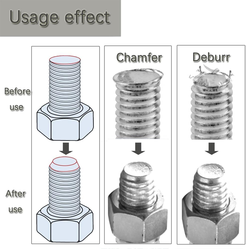 【Advantage】This thread deburring tool can quickly repairs damaged bolts and tightens the nuts in place. Simplifies the repair process and eliminates the need to replace expensive or hard-to-find hardware.