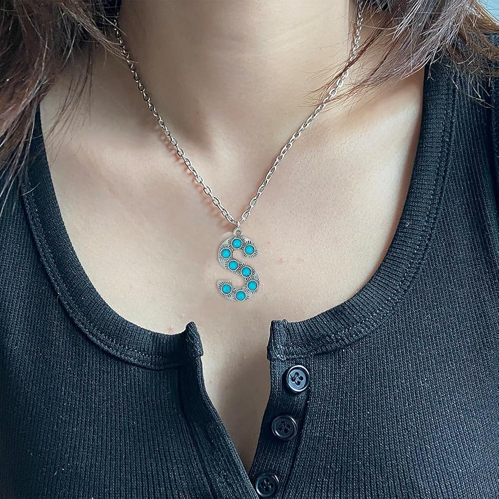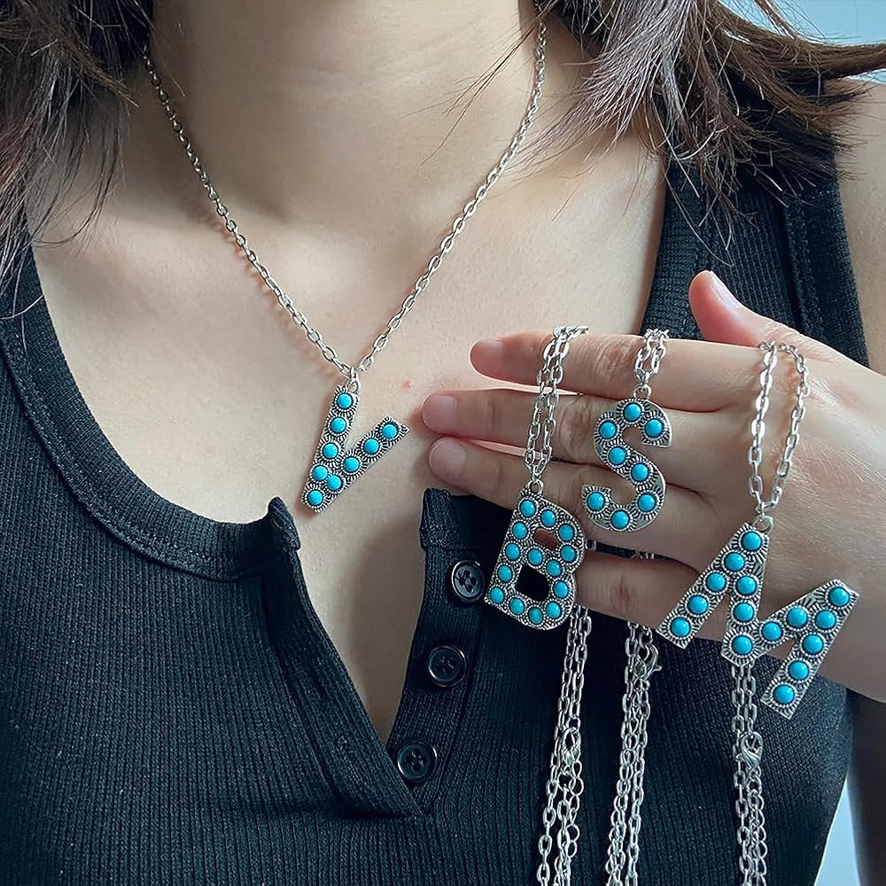 💝 EXPRESS YOUR LOVE🌟 :Stainless steel alphabet turquoise necklace is design inspired by the natural world in all its glory and a beautiful way to symbolize and express your love.Delicately designed to capture the beauty of nature in stunning jewelry and easy to mix and match with other accessories or clothing.