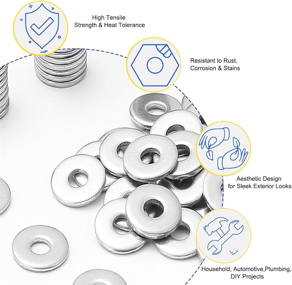 【Premium Material】: The washer assortment kit are made of top-quality stainless steel material, with good rust resistance and corrosion resistance.