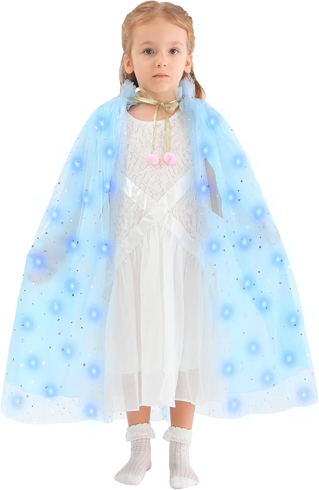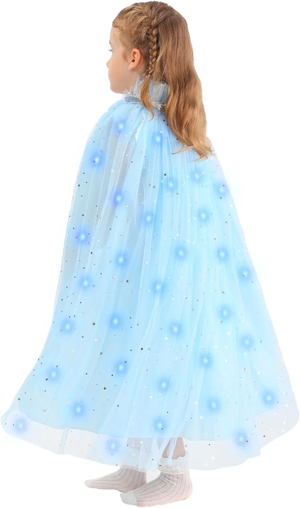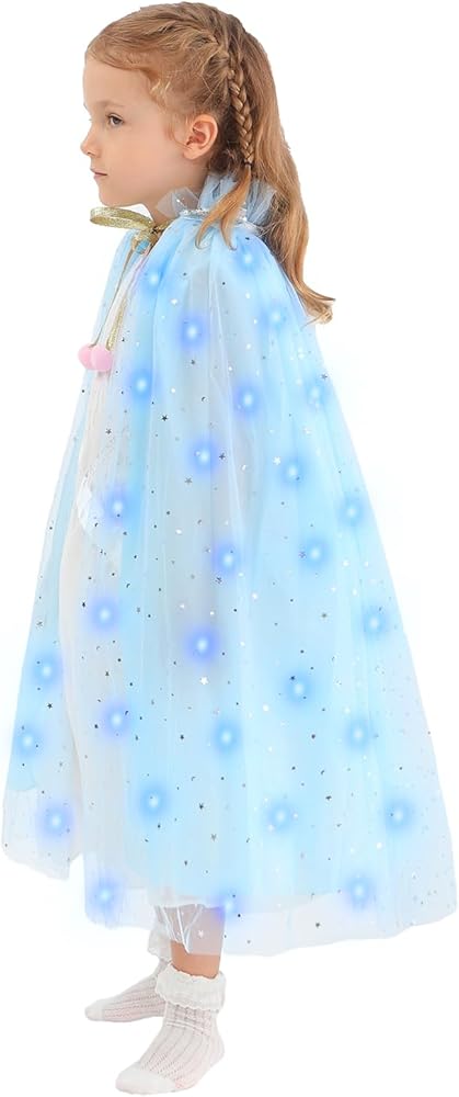- Let this light up cape to finish the little princess dress up complete, make her to be the hit of the princess party