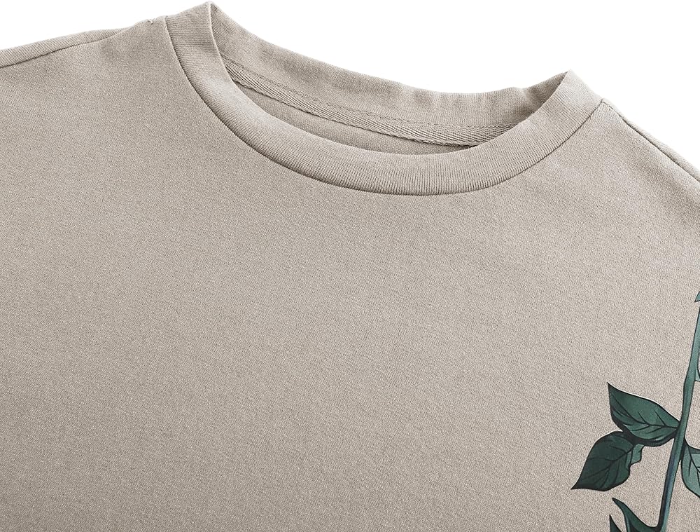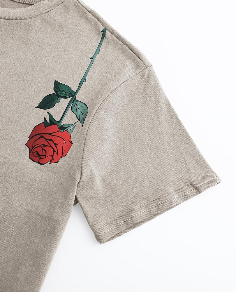 Features: Graphic print tees,Floral letter print, short sleeve, round neck, loose fit, casual, cute and fashionable style. Trendy t shirts for boys, pair well with your denim jeans, shorts, pants for a casual look.