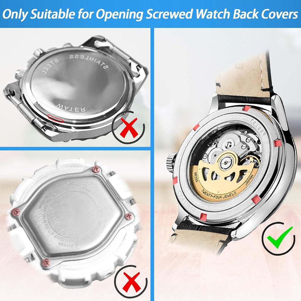 Watch Battery Replacement Kit, GLDCAPA Watch Back Remover for Rotate Open Watch Cover, Watch Opening Tool, Watch Strap Removal, Watch Case Opener with Tweezers, Spring Bar, Instruction Manual