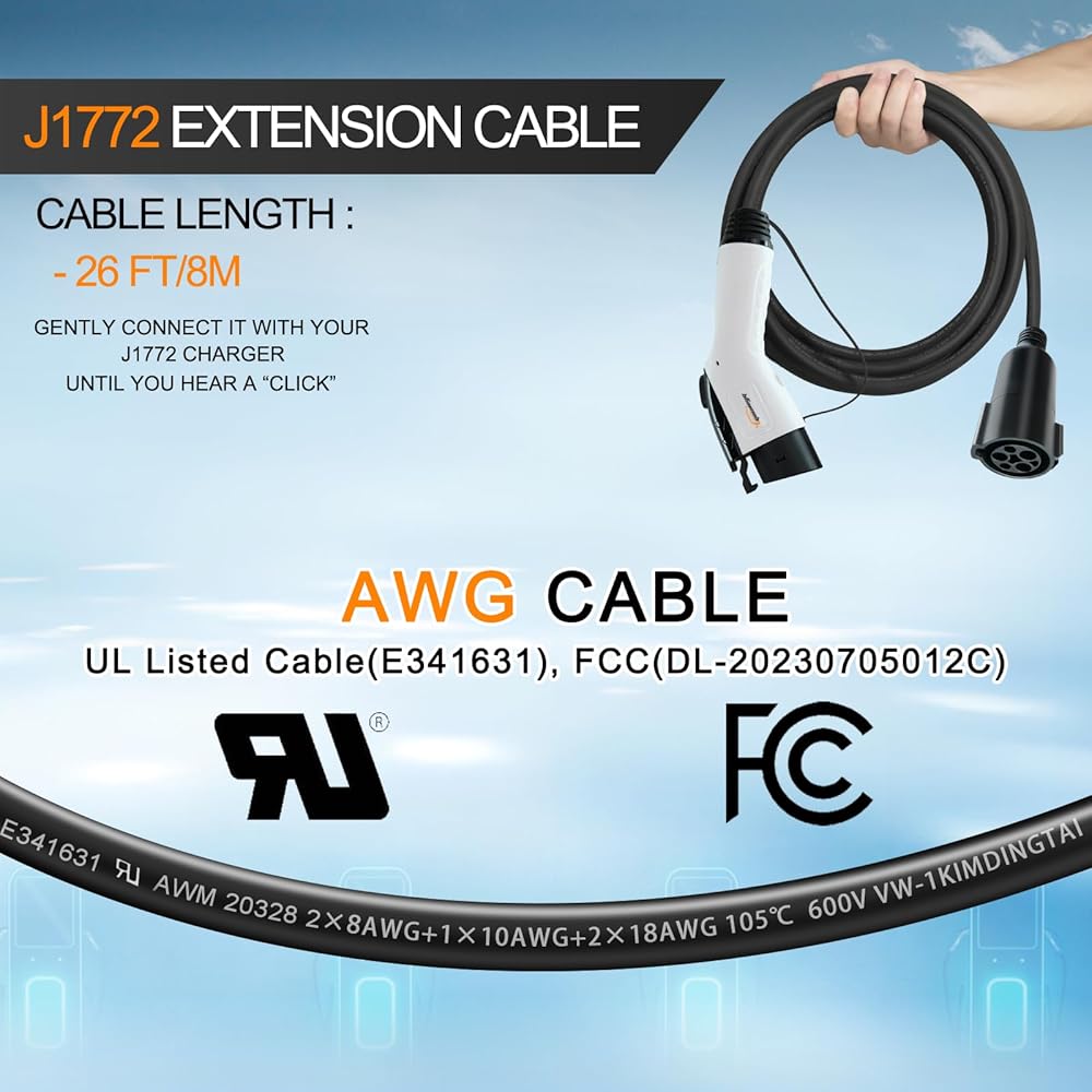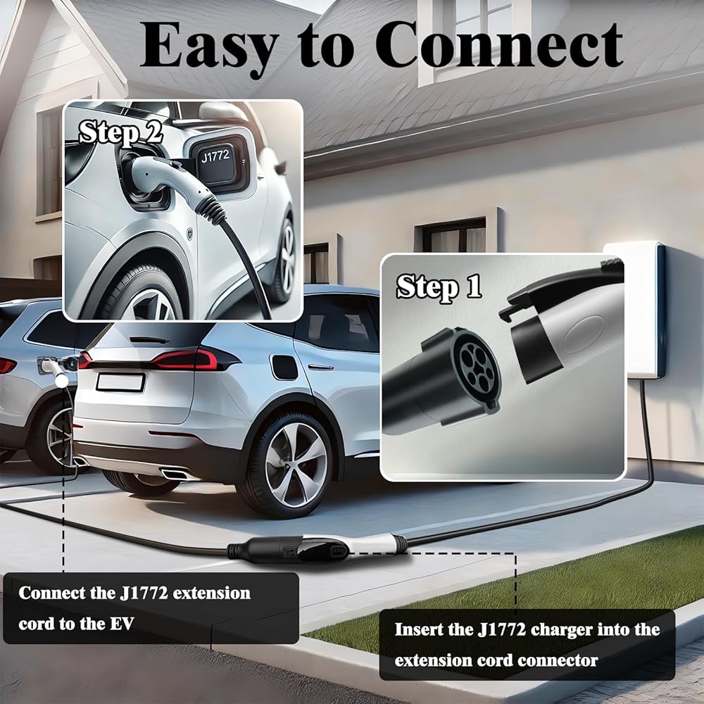 Quality and Safety: The J1772 extension cable can withstand impact, pressure, and wear, and has a fireproof, IP54 waterproof design and silver plated copper alloy contacts, which can prevent overheating, provide better conductivity, and provide maximum protection under challenging conditions.