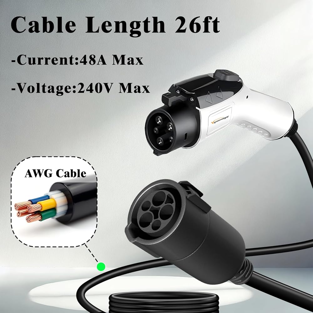 Widely Compatible: Our 48A 250V extension cable features two SAE J1772 adapters, suitable for all level 1 and level 2 electric vehicle chargers and electric vehicle charging stations.