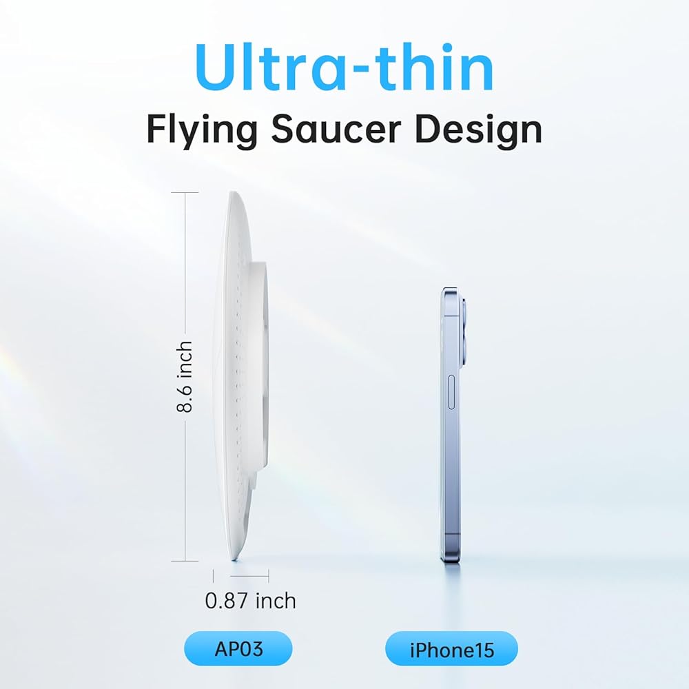 Sleek Ultra-Thin Design: The access point features an ultra-thin flying saucer design with a thickness of just 22.3mm. Its modern and compact form factor ensures it integrates seamlessly into any environment, whether it's your home, office, or a commercial setting.