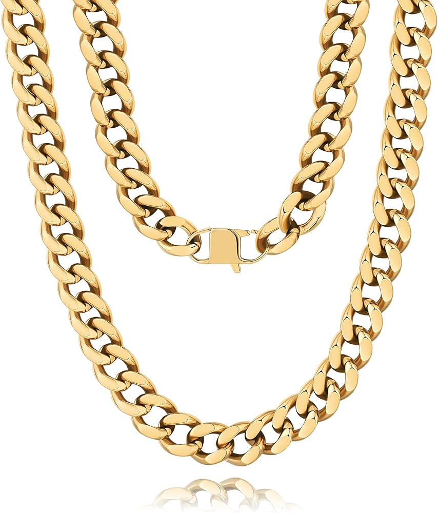 NOKMIT Chunky Cuban Link Curb Chain Necklace for Women Men Dainty 18K Gold Silver Tone Choker Thick Trendy Statement Diamond Cut Punk Hip Hop Cuban Chain Jewelry Gifts Unisex Size 5mm/9mm/13mm/16mm
