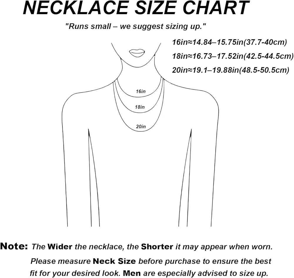 Cool Hip Hop Style - Available in three size to suit your needs. A 5mm width with a chain length of 18.5 inches, tailored for those with a petite neckline. A 13mm width with a 16.5-inch chain length, perfect for fashion-forward individuals. A 16mm width with a 17.5-inch chain length, ideal for people who prefer a bolder aesthetic. Each emits a magnificent glow, displaying singular elegance and deep meaning, truly capturing the beauty of individualism.