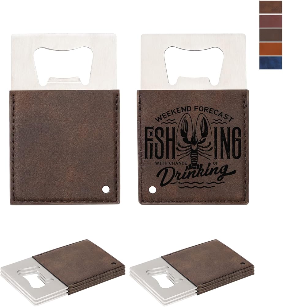 PYD Life 8 Pack Credit Card Bottle Opener Stainless Steel with Brown Leather Handle Blanks 2.2" x 3.3" for Glowforge Xtool Laser Engraing Custom Name Patterns,Beer Opener for Kitchen,Bar,or Home
