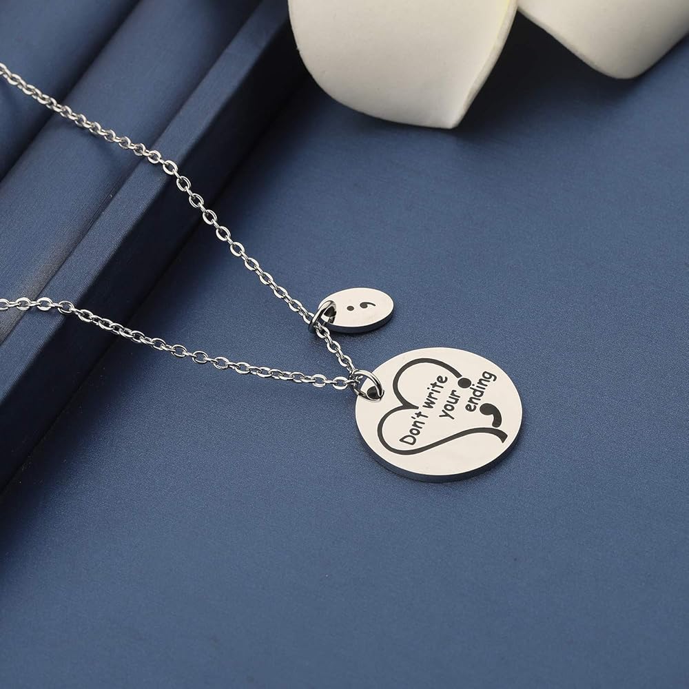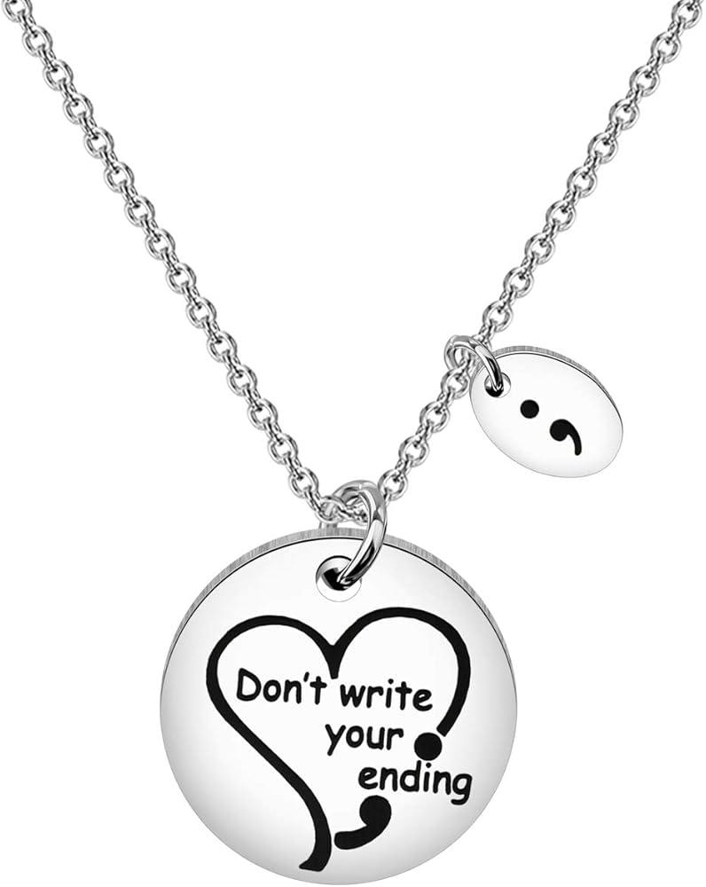 MYOSPARK Semicolon Necklace Don't Write Your Ending Mental Health Awareness Jewelry Inspirational Motivational Gift