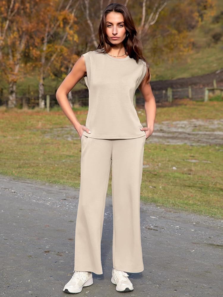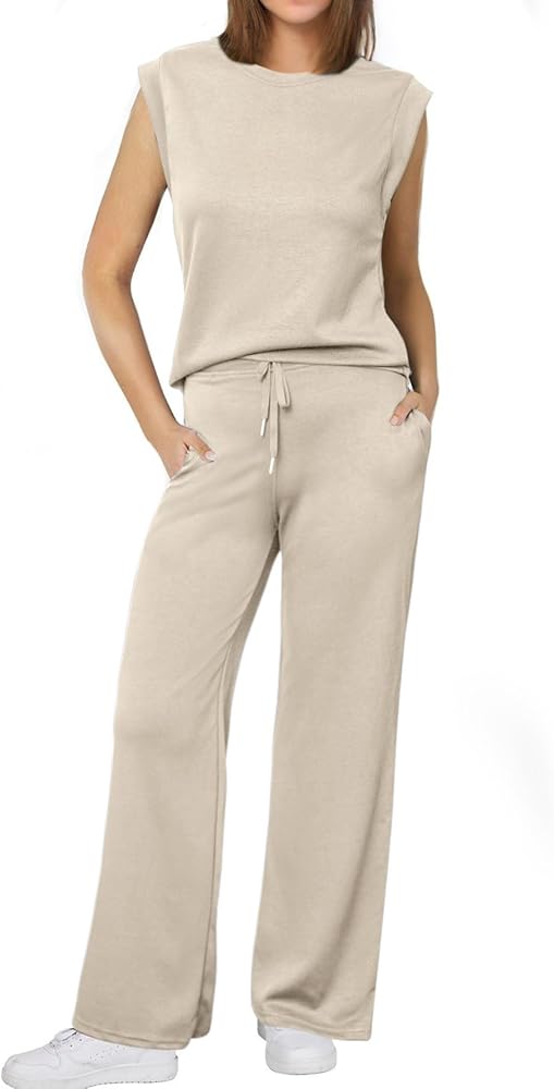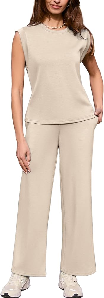 Top: This travel outfits for women 2 piece sets are Crewneck tops/ sleeveless tops/ This basic cute loose top is long enough to hide your belly