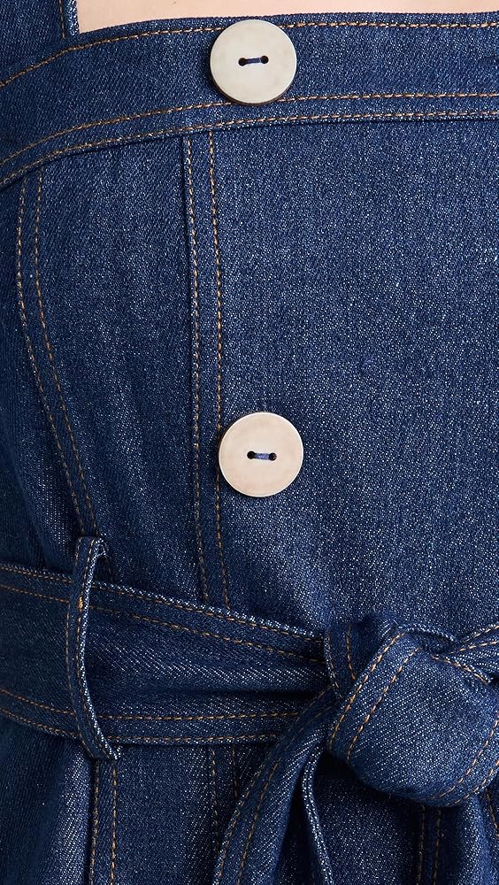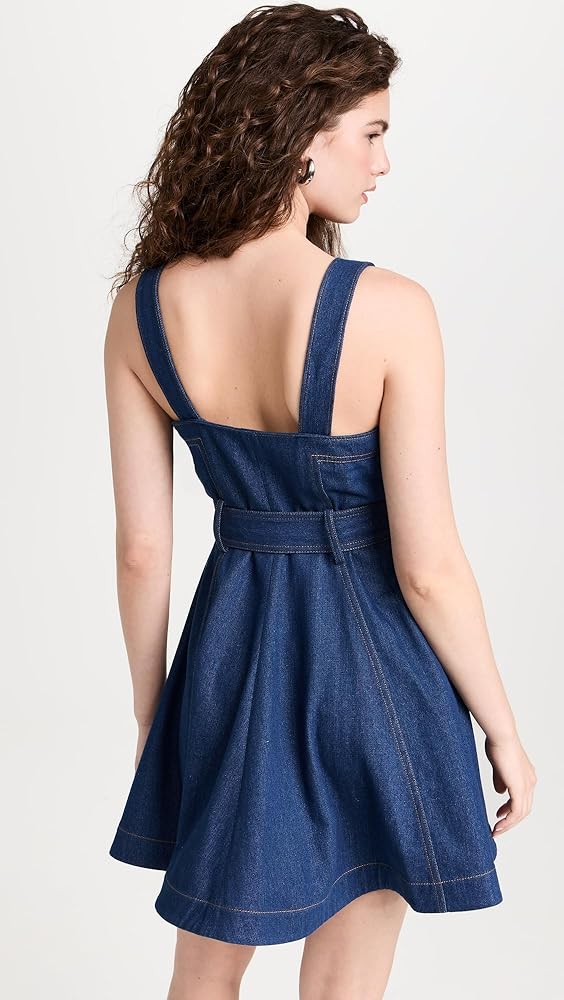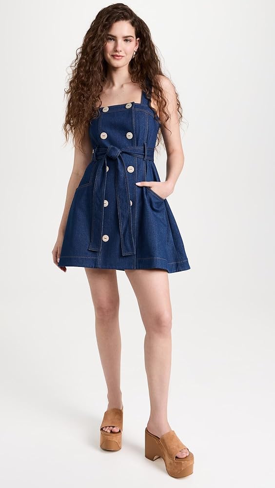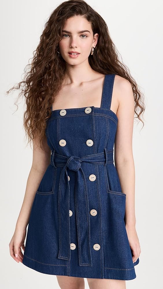 Runs true to size. , Mini dress has an A-line silhouette and high-low hem. Non-stretch denim has a brushed texture and may feel snug initially, but will soften and give with regular wear.