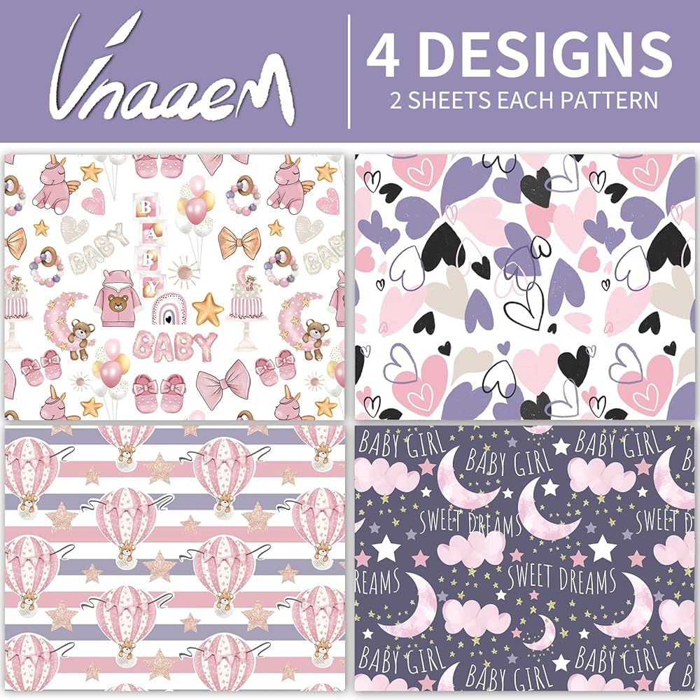 SIZE:Our package include 8 sheets in 4 patterns,each sheet size is about 19.6 X27.8 inches.paper comes in a bag package to protect these sweet baby girl patterns from scrapes and damages during shipping.