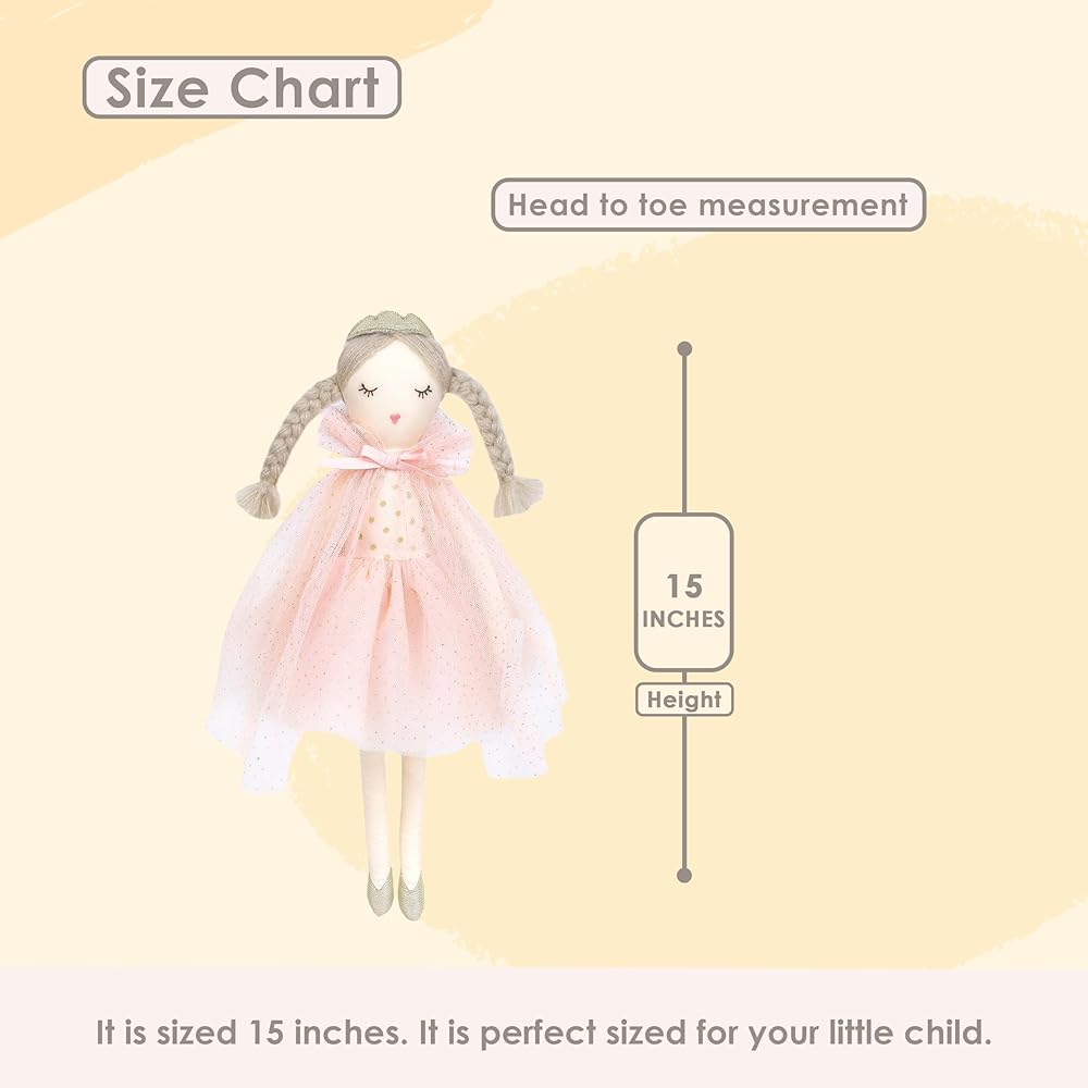 MEASUREMENT – The Mon Ami Doll measures 22x7x2 inches. It is a perfect sized toy for little hands to hold and cuddle.