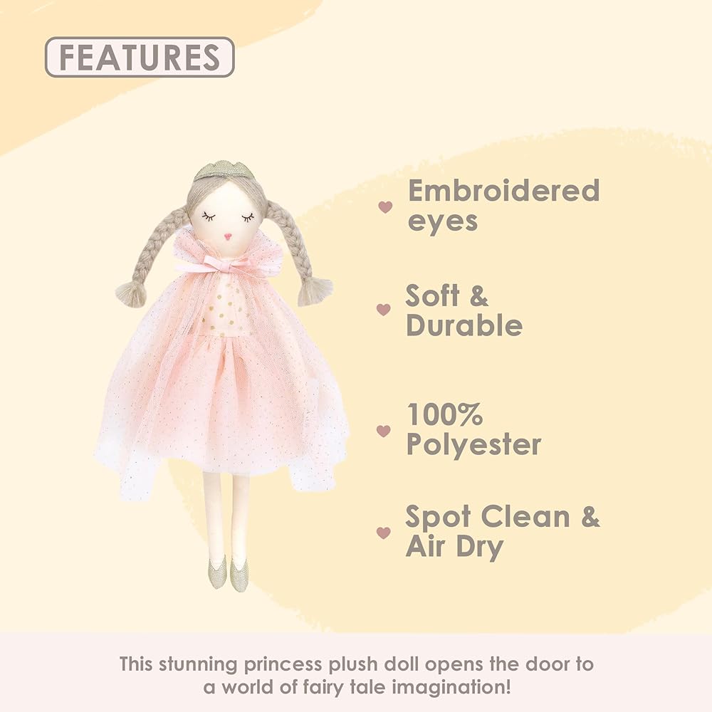 MATERIAL AND CARE – It is crafted from 100% premium quality materials for softness and durability. The doll can be spot cleaned and air dried.