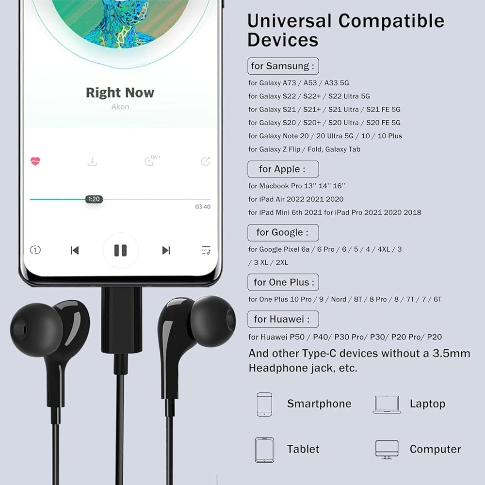 【Wide Compatibility】These USB C headphone work with all Type C devices without 3.5 mm jack, including Apple headphones for iPhone 15/15 Plus/15 Pro/15 Pro Max iPad 10 iPad Pro/Mini 6/Air,Samsung Galaxy Z Flip/Fold/Note, S24 FE/S24/S24+/S24 Ultra,S23 FE/S23/S23+/S23 Ultra, A74/A53/A54/A33/A34, S22/S22+/S22 Ultra, S21 FE/S21/S21+/S21 Ultra, S20 FE/S20 Ultra/S20+/S20, Google Pixel 8 Pro 7a 76a 6 5, OnePlus 10T/10 Pro/9/Nord/8T/8/7T/7/6T, and other usb c phones and tablets with type-C audio.