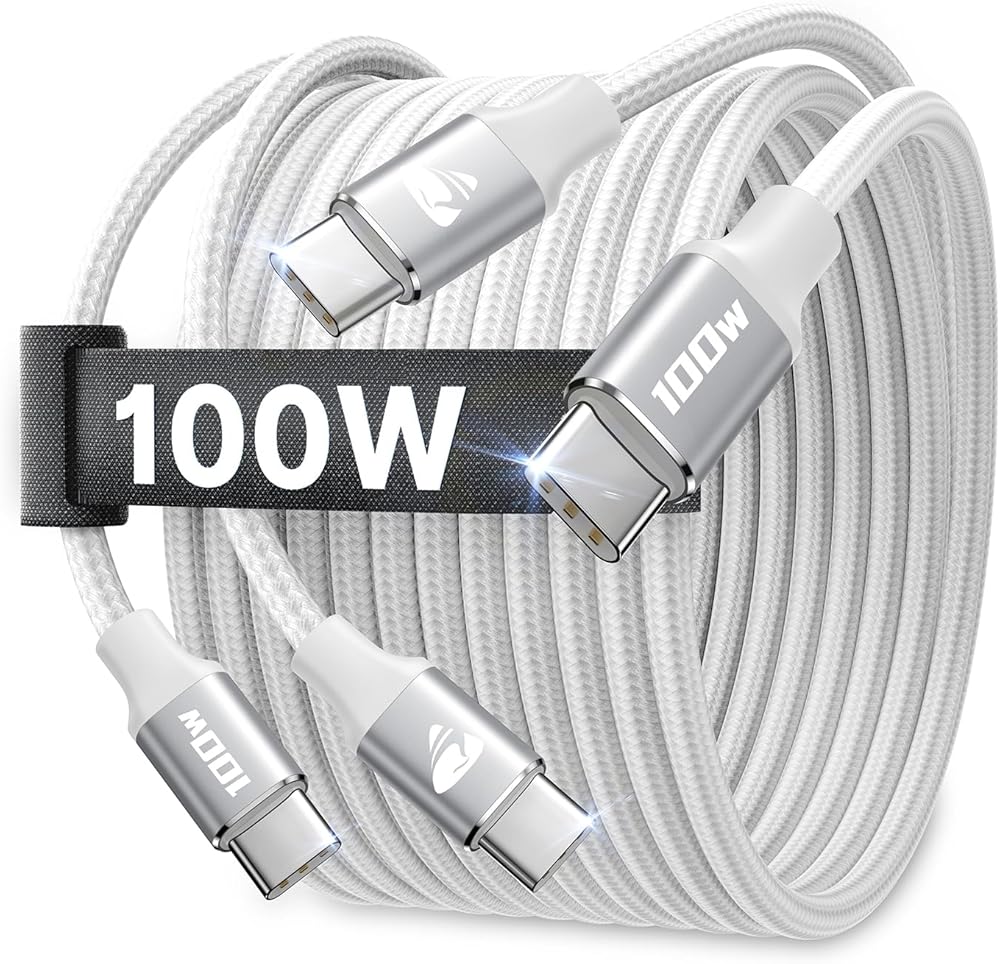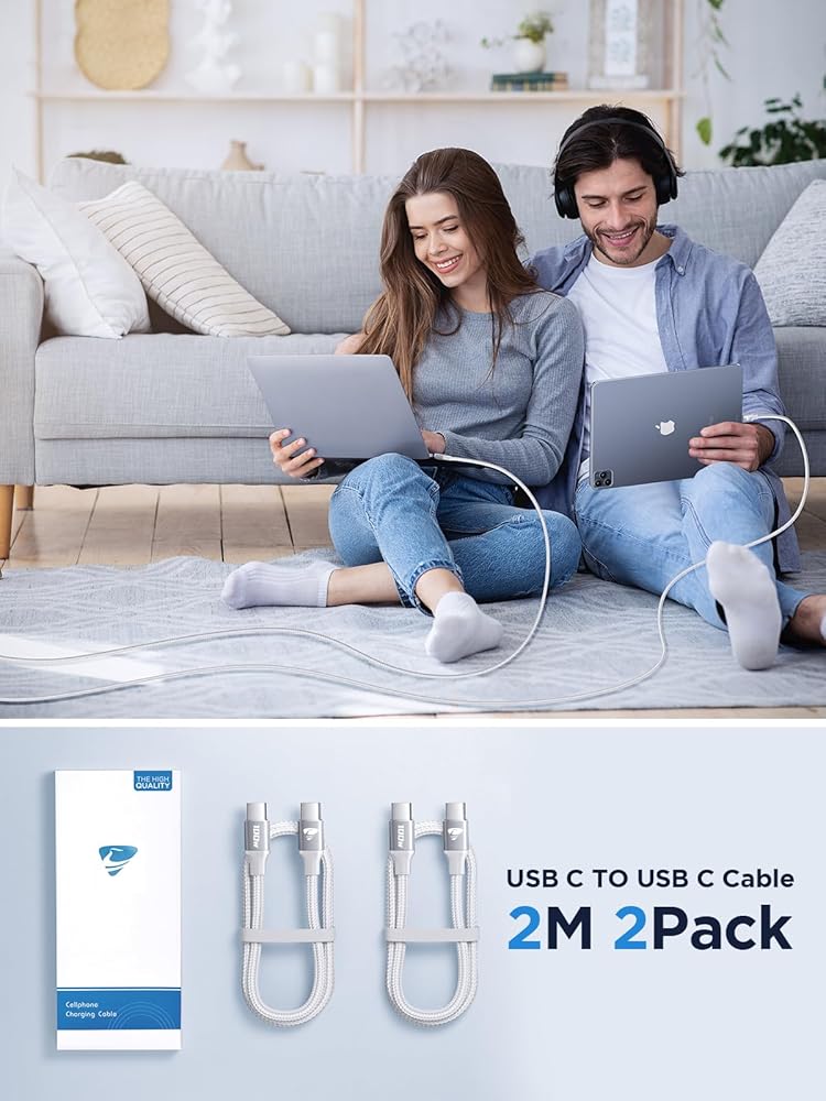 USB C to USB C Cable 100W [6.6ft/2 Pack] USBC to USBC Fast Charging Cable Braided USB C to C Charger Cord for iPhone 15 Pro Max Plus, MacBook Pro/Air, iPad Pro,Samsung Galaxy S24 Ultra S23,Pixel