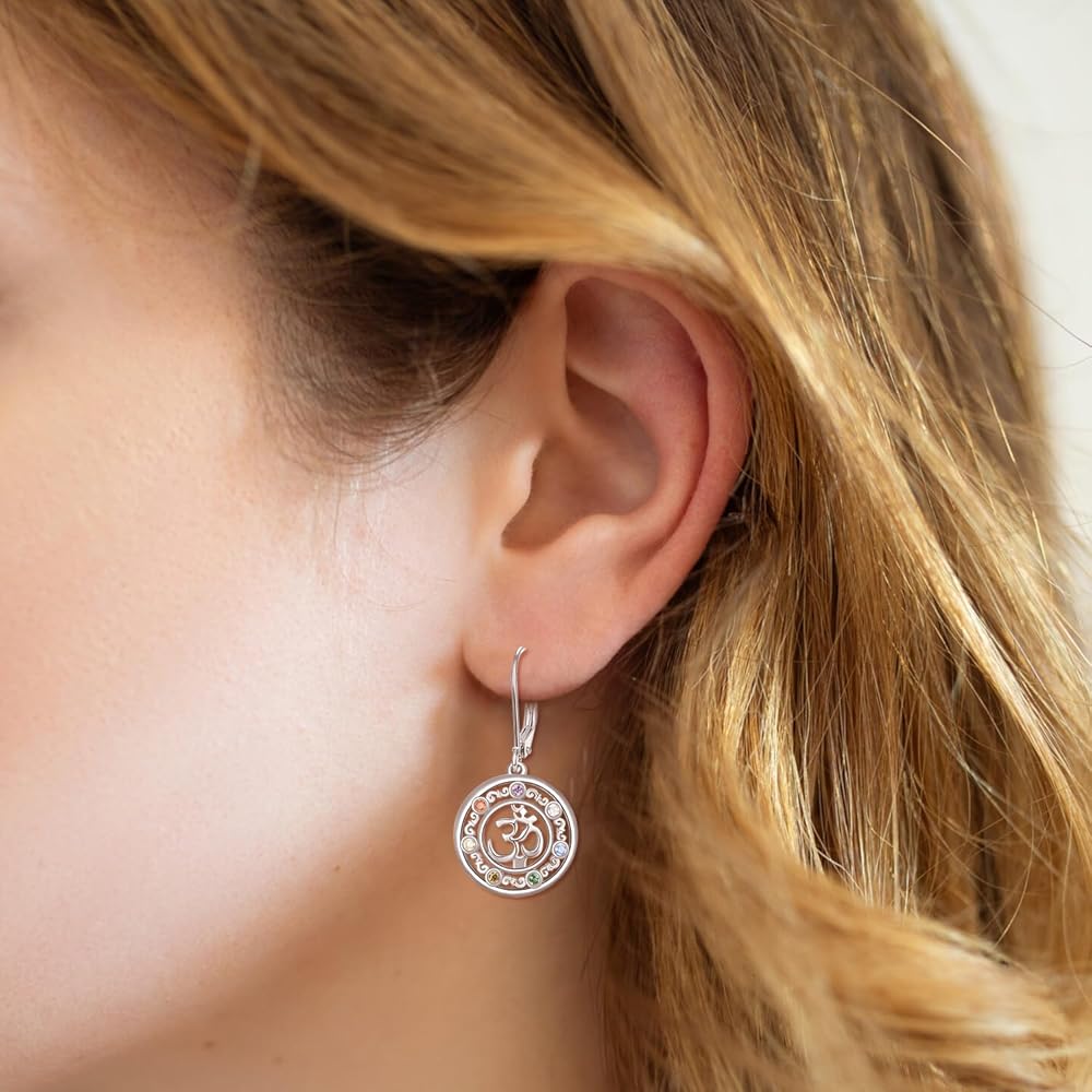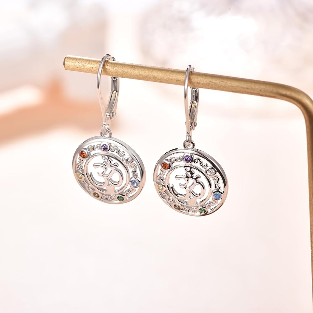 💗CHAKRA HEALING: This Om symbol earrings is made all the exquisite with seven faceted cz that correspond to the body's seven energy centers, encouraging healing and balance. Chakra-inspired cz make this sterling chakra pendant shine with color and sparkle.