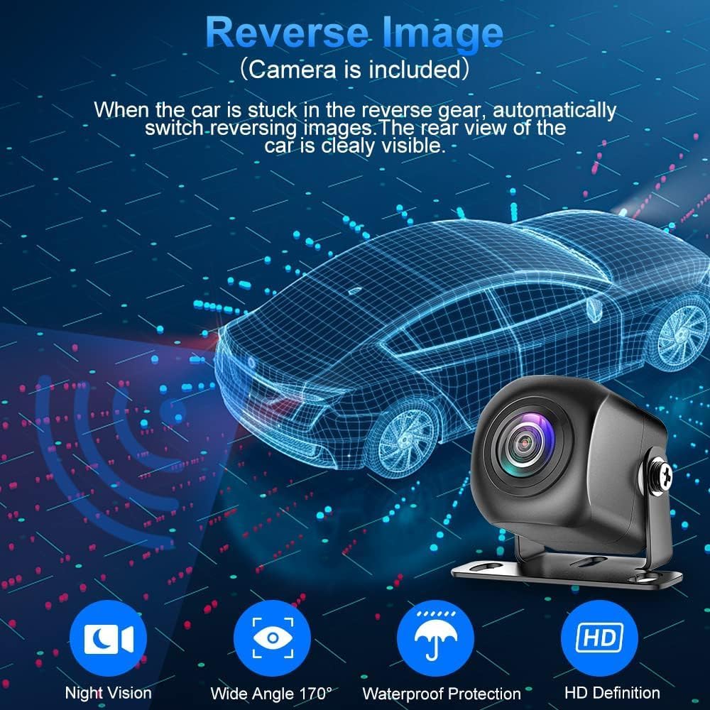 • 【Free Backup Camera】Supporting front/ rear camera, this car stereo with a waterproof view and HD night vision AHD camera let you no longer worry about reversing safety, and display the image automatically when the vehicle shifts into reverse, working as a parking assistance.