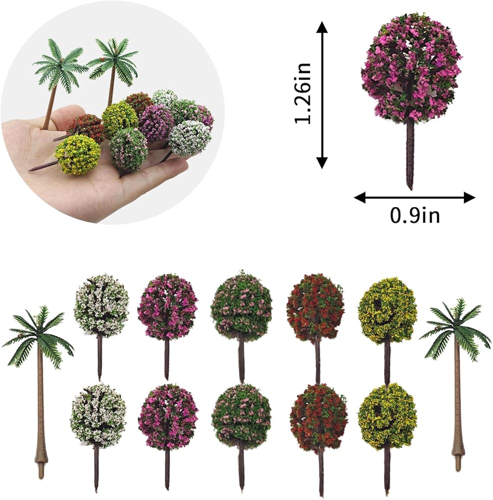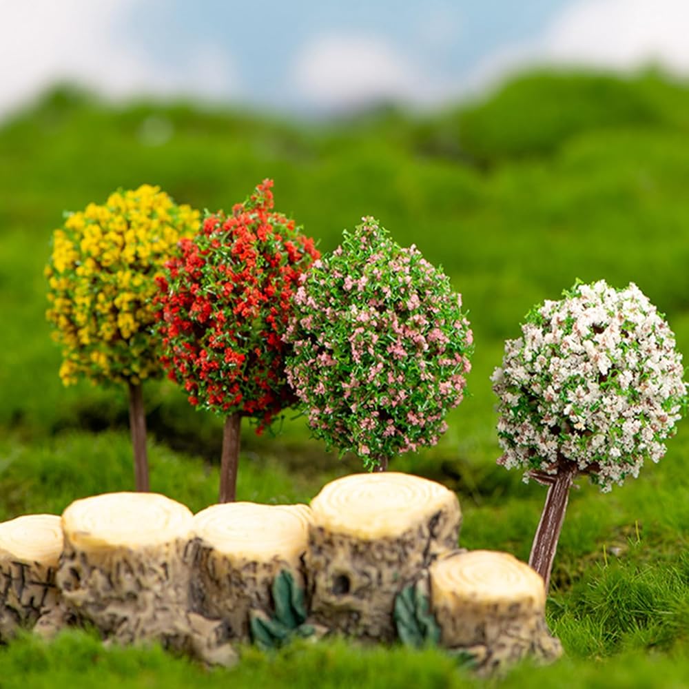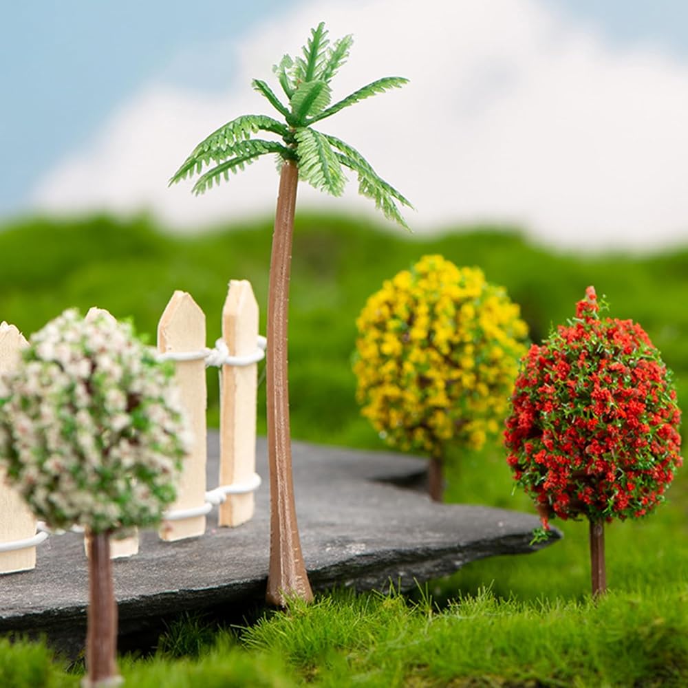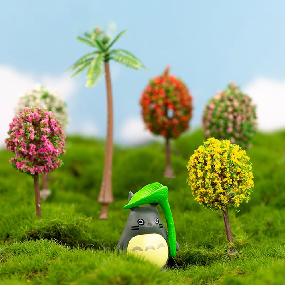 Mini Tree Set , Dollhouse Miniature Tiny Trees Figurines, Mini Resin Animals Landscaping Decoration,Cute Stuff accessories for Party ,Cake,Fairy Garden Decorations - 12 Pcs