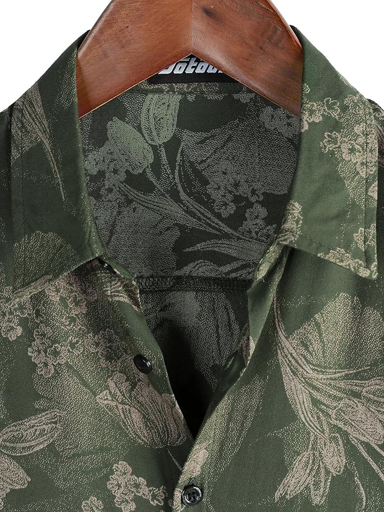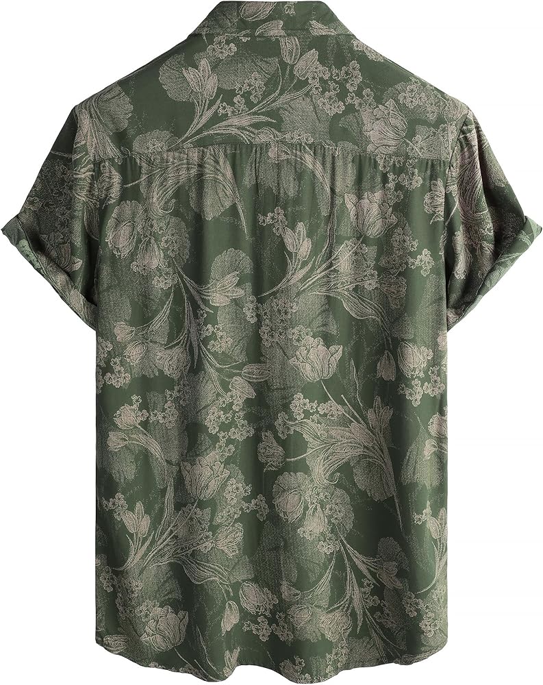 Style: Featuring tropical flower print design, short sleeves, button closure, spread collar,regular fit, curved hem. This stylish and innovative design is sure to become a must-have tropical shirt in men's wardrobe.