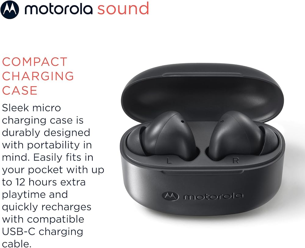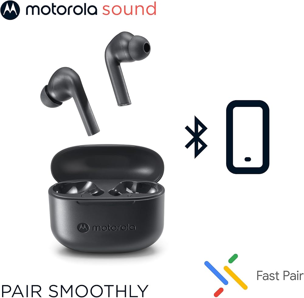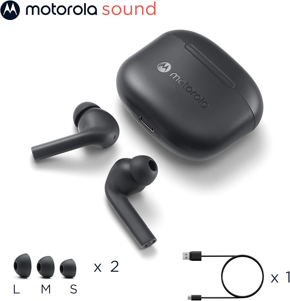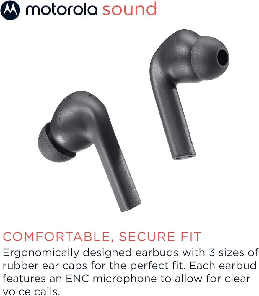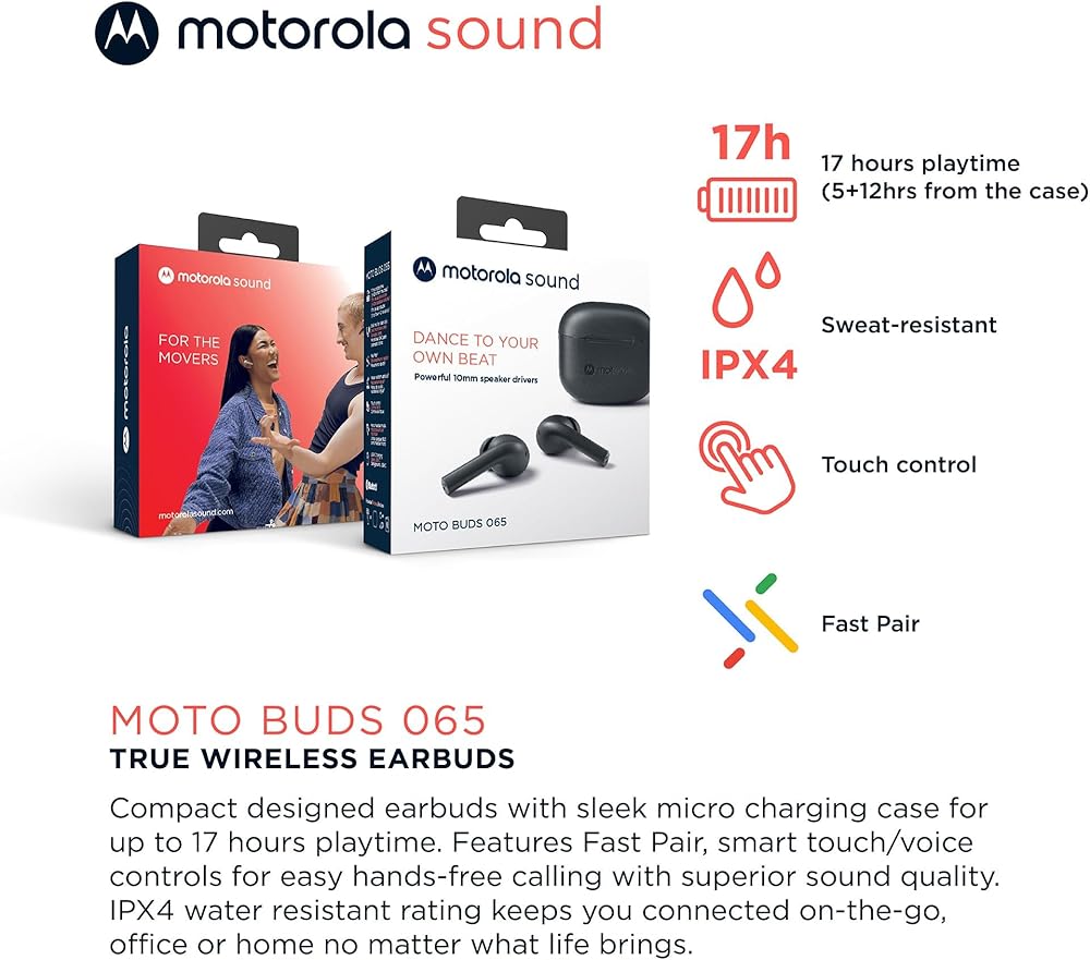 Motorola Moto Buds 065 - True Wireless, Ear Buds, Noise Isolation and 17 Hours Playtime, Touch Control on Both Earbuds, IPX4 Water Resistant, ENC mic for Clear Voice Calls. (Moonless Night)