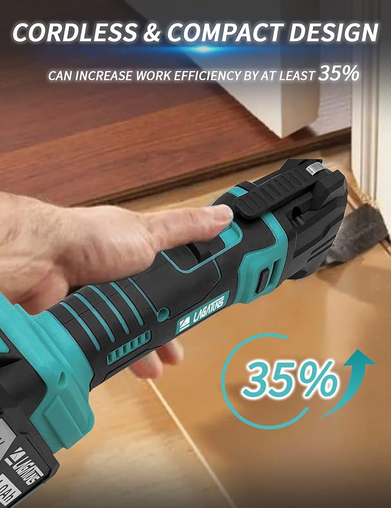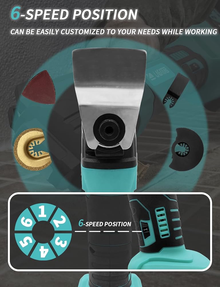 【6 Variable Speeds & 4° Oscillating Angle】The oscillating saw features six speed positions, allowing you to easily customize the speed up to 22,000 OPM according to your specific needs while working. The wide oscillating angle enhances work efficiency, resulting in better cutting performance compared to a 3° oscillating multitool.