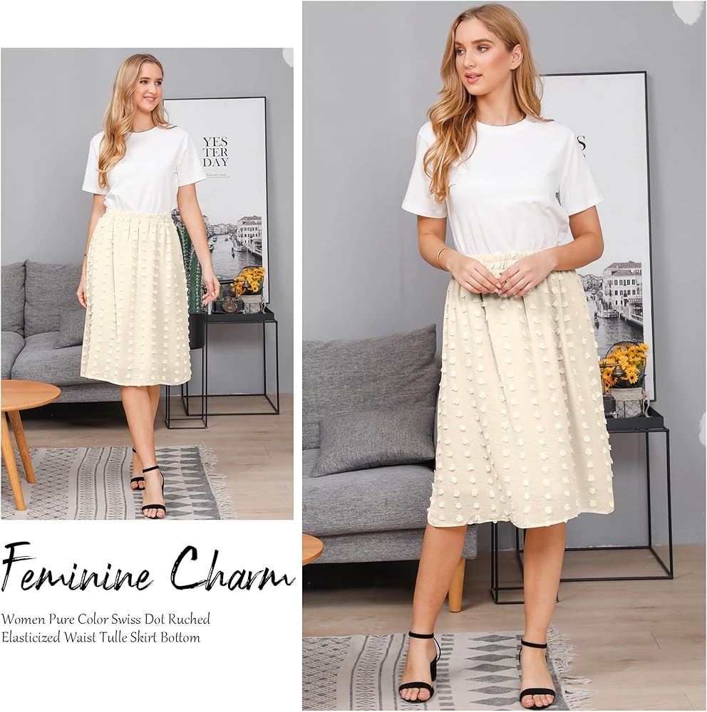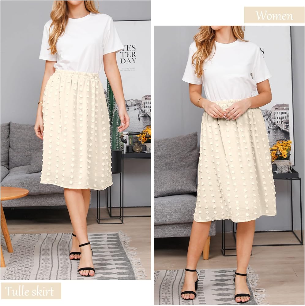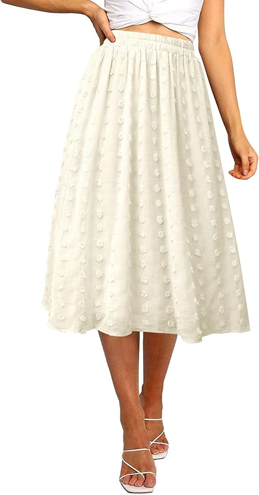 Elastic High Waist, Midi Length, The A-Line Skirts Releases The Flowy Ruffled Hemline Bohemia Skirts. High-Elastic Pleated Waist And Elegant Hem For A Variety Of Body.