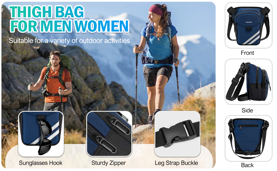 ⚡【MULTI-POCKET DESIGN】: This thigh bag has 4 pockets and 3 compartments to store all the essentials for hiking or other outdoor activities and keep items organized on the go. It can easily hold your cell phone, wallet, keys, sunglasses, pens, flashlight, mobile power and other small items.