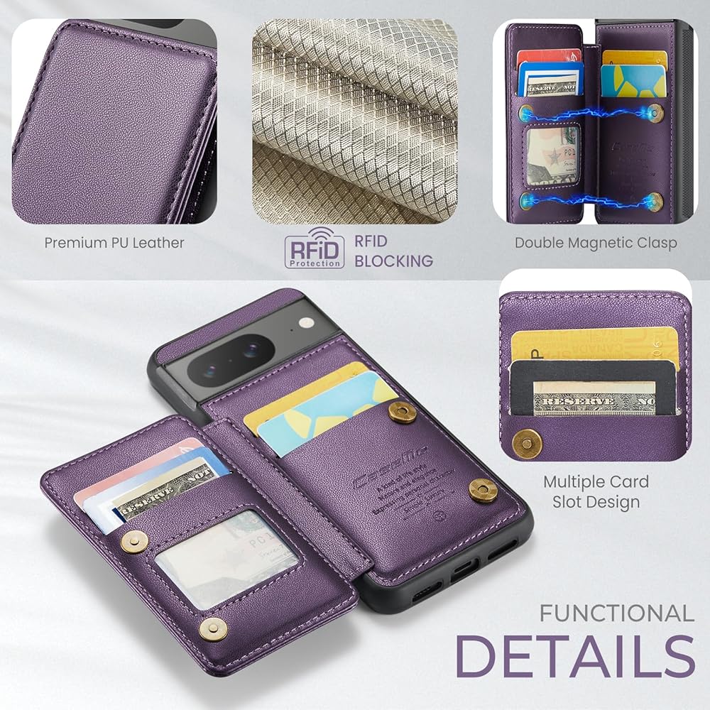 【RFID Blocking】Equipped with RFID blocking technology, wallet case for Google Pixel 8 is designed to protect your cards, information from theft with an innovative blocking material. Most Credit Cards, Debit Cards, ID Cards are set-in the RFID chip, the RFID reader can easily read the cards information within 10 feet(about 3m) without touching them.
