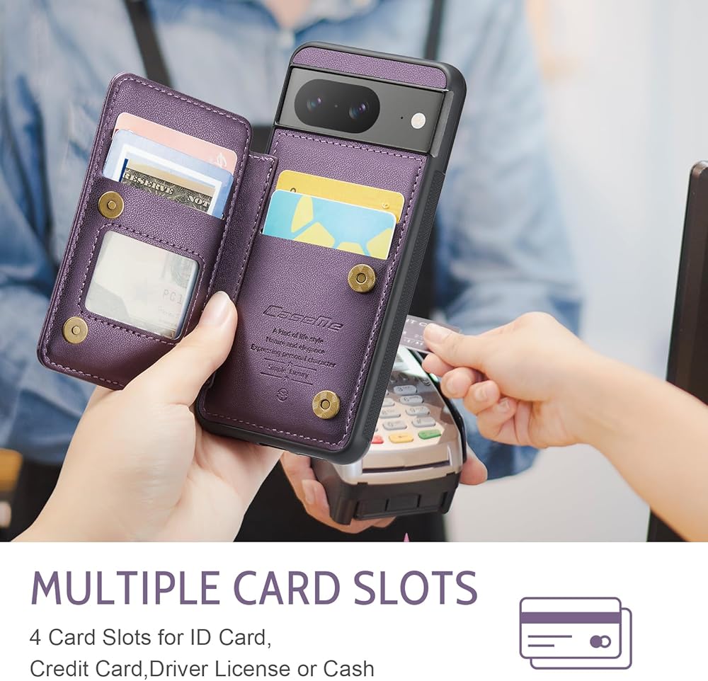 【Card Holder】This phone case Compatible with Google Pixel 8 The all-in-one design combining wallet and phone case into one, Magnetic Closure with 4 card holders is designed for IDs, debit cards, credit cards, etc. The all-in-one design allows you easy to carry when go outside.