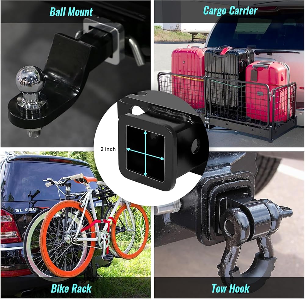 【MATERIAL & DURABILITY】 The 2-inch trailer hitch is made of high-quality carbon steel to ensure its strength and durability, which is not easy to break. Its surface has been shot peened and specially painted to prevent corrosion, which enhances rust and corrosion resistance, making this hitch work well in a variety of environments.
