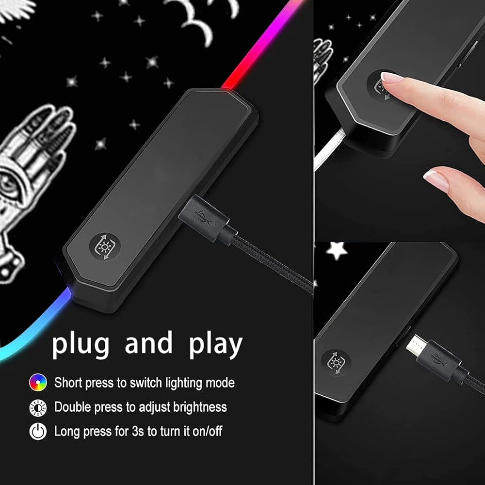 One-touch to change the color. Color Switch Button, click to switch the light mode (looping 10 lights modes). Long press 3 seconds to turn off the light, and click to turn on the light, energy conservation. A detachable USB cable, easy to carry the mousepad