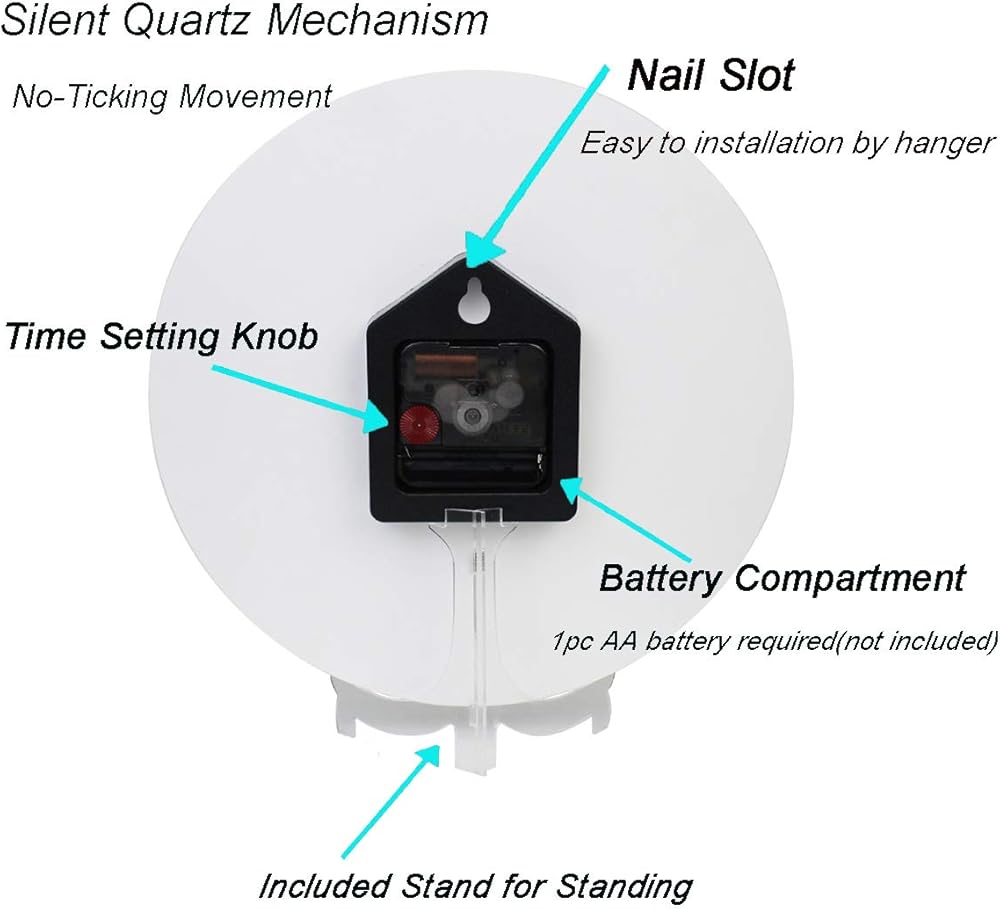 1.The clock is unframed, and there is no glass face as the cover. Please be careful not to bend or press the clock hands while you put the battery in.