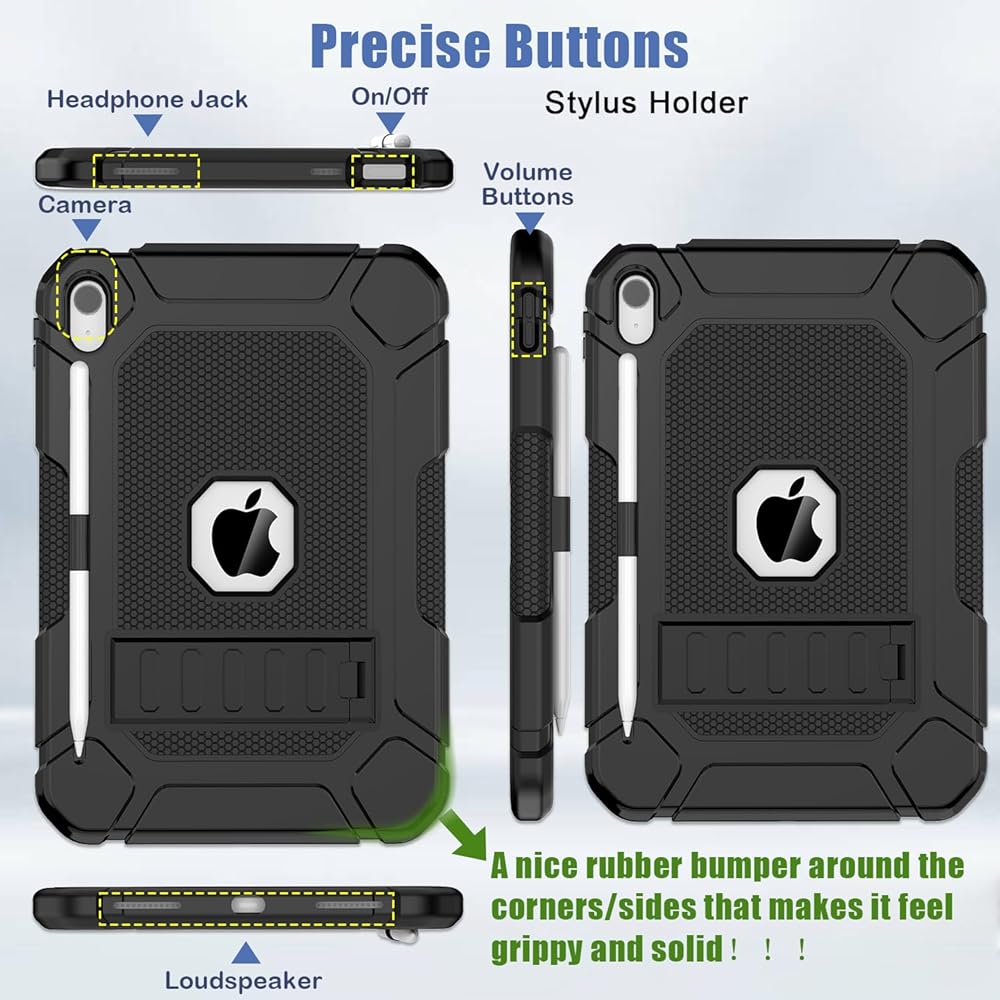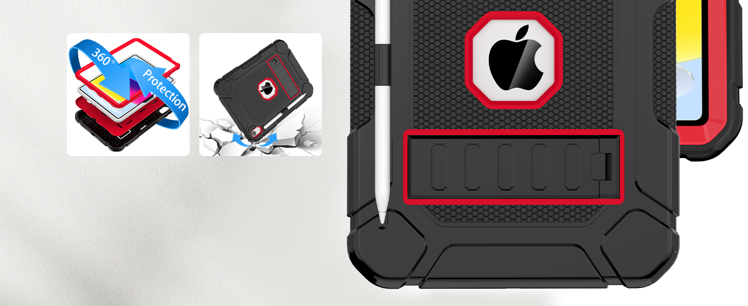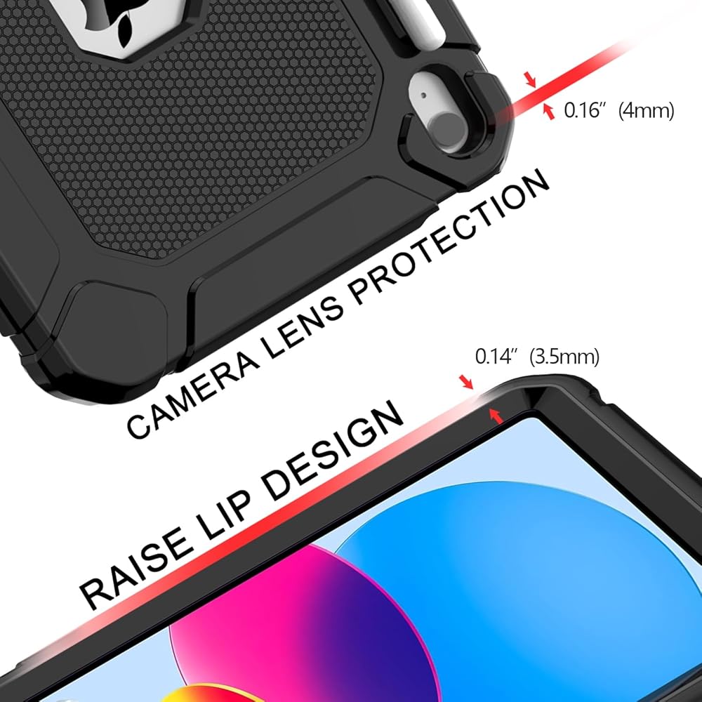 ❤️【Full Body Protection】The iPad 10.9 inch case is made from 3 layers, including hard plastic shell, hard PC cover and soft shockproof silicone rubber. There is a nice rubber bumper around the corners/sides that makes it feel grippy and solid. It will provide full-body heavy duty protection for your iPad against accidental drops, scratches, shocks, bumps and dirt.