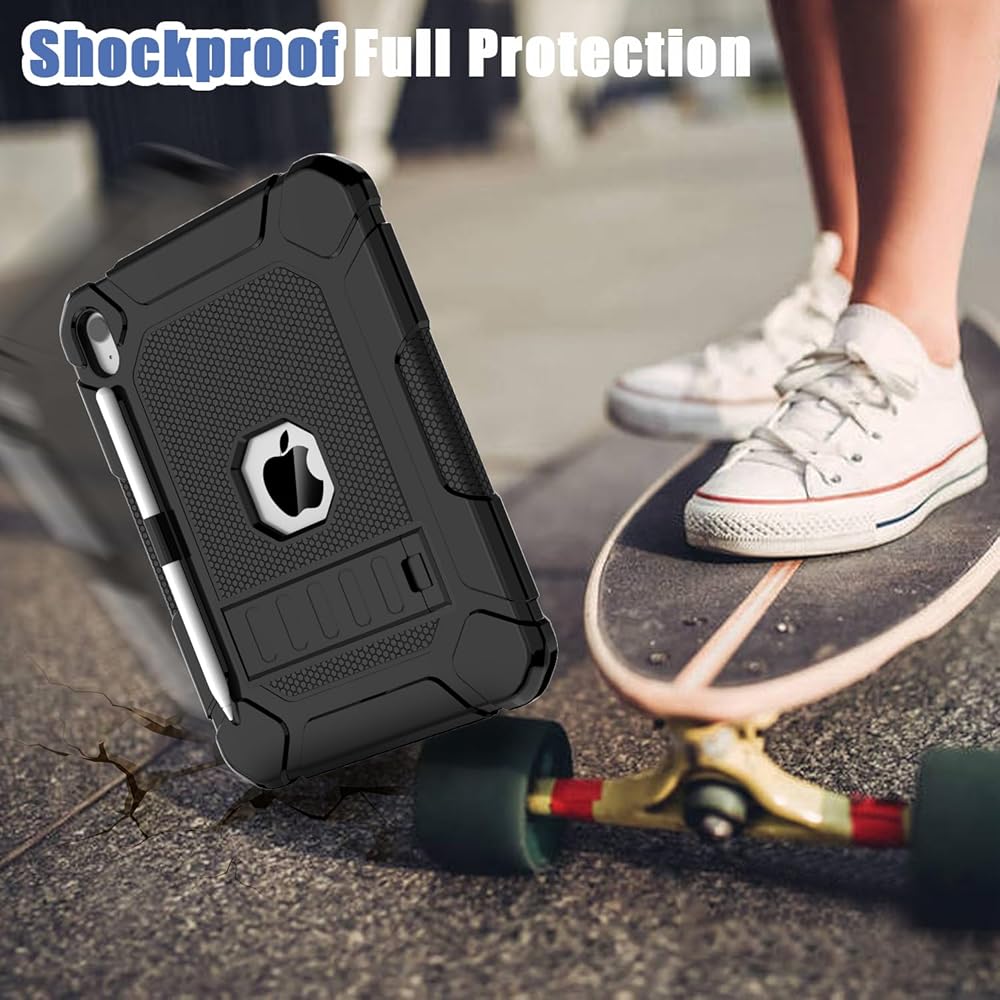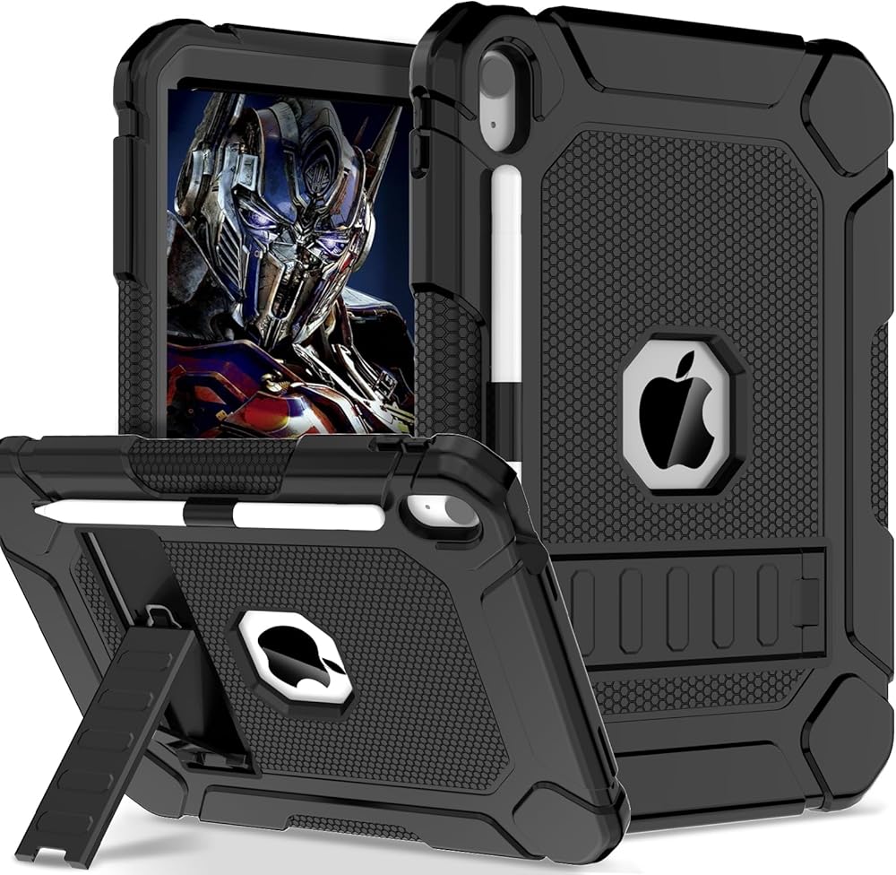 Case for iPad 10th Generation 2022 Model, iPad 10.9 Inch Case for Kids, Heavy Duty Shockproof Rugged Protective Cover with Built-in Kickstand & Pencil Holder for iPad 10th Gen 2022 - Black