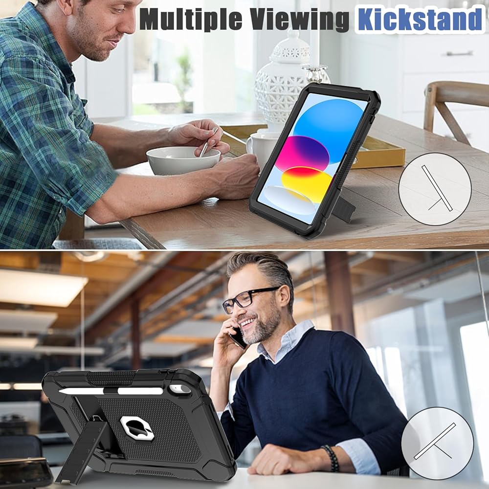 ❤️【Amazing Mutifunction Rotating Kickstand】iPad 10th Gen case, the 360 Degree rotating Kickstand provides multi-angle viewing, offering you a easy convenience for watching, working and typing. The stand on the back gives it strong support and frees your hands.