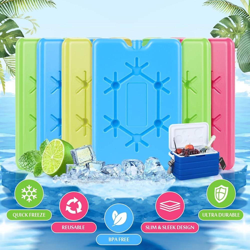 【Convenient & Usage】The cooler ice packs reusable conveniently accommodates various types of lunch bags, lunch boxes, coolers, and grocery totes.It is great for keeping food, drinks while camping, hiking, fishing, picnics and barbecues.