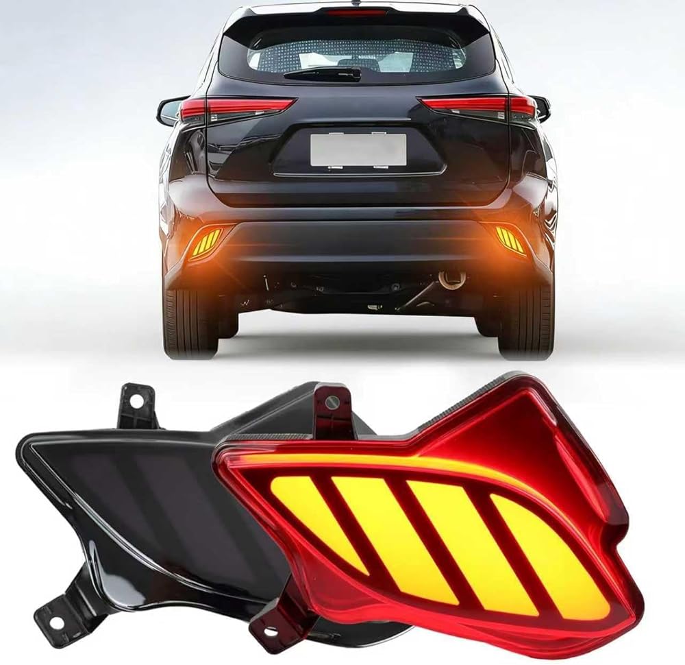 Smoked LED Rear Reflector Fog Daytime Running Lamp Dynamic Sequential LED Turn Signal Light Function Compatible with Toyota Highlander 4TH 2021 2022 2023 SE LE XSE
