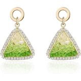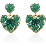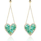 Details: Make your love known with these green heart-shaped pendant earrings, which are studded with pink irregular cubic zirconia. A green heart with long gold-plated chains will elongate your face. The earrings are made from 925 sterling silver, a hypoallergenic precious metal, and come with a clear soft glue back to ensure the earrings are safe at all times.