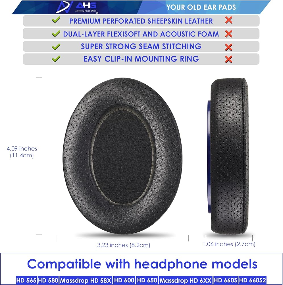 You deserve nothing but excellent quality. These AHG replacement ear pads compatible with Sennheiser headphones HD600, HD650, HD 660S, HD 660S2, Massdrop X HD6XX, HD58X Jubilee, and HD580 replacement ear cushions not only provide exceptional comfort but also help revive your listening experience. Enjoy crisp, clear sound and immerse yourself in your music just like old times. Replacing your ear pads and headband will help renew the comfort you have been missing.