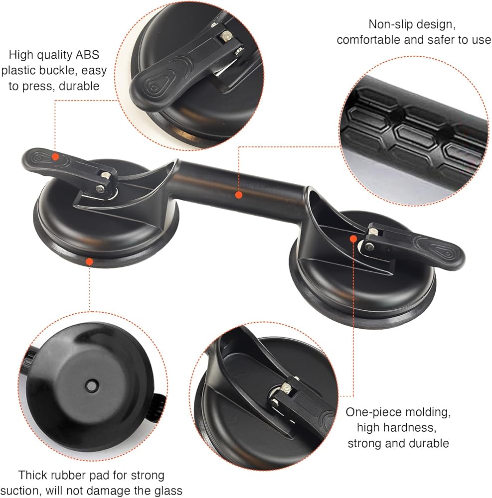 MULTIPLE USES: The handy double handle suction cup can firmly stick to any clean non-porous flat surface, an ideal essential tool for fix gapped laminate floors as floor gap fixer, used in the bath as a safety handrail, tile suction cup lifter, removing and installing the car windshield, moving glass, sheet metal, granite, furniture, home appliances, aquarium.