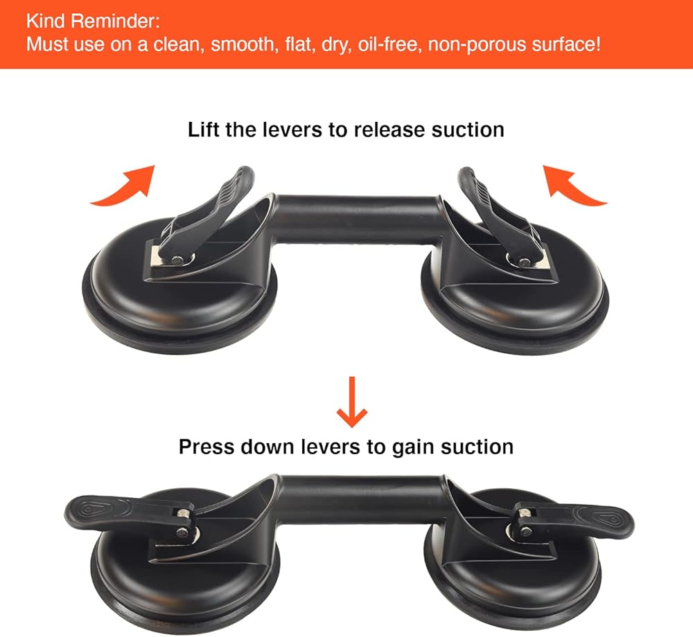 HIGH QUALITY & STRONG LIFTING CAPACITY: Our glass suction cups are made of premium aluminum alloy and thickened natural rubber seal that can lift objects up to 220 lbs in level and 176 lbs in vertical position with strong suction power.