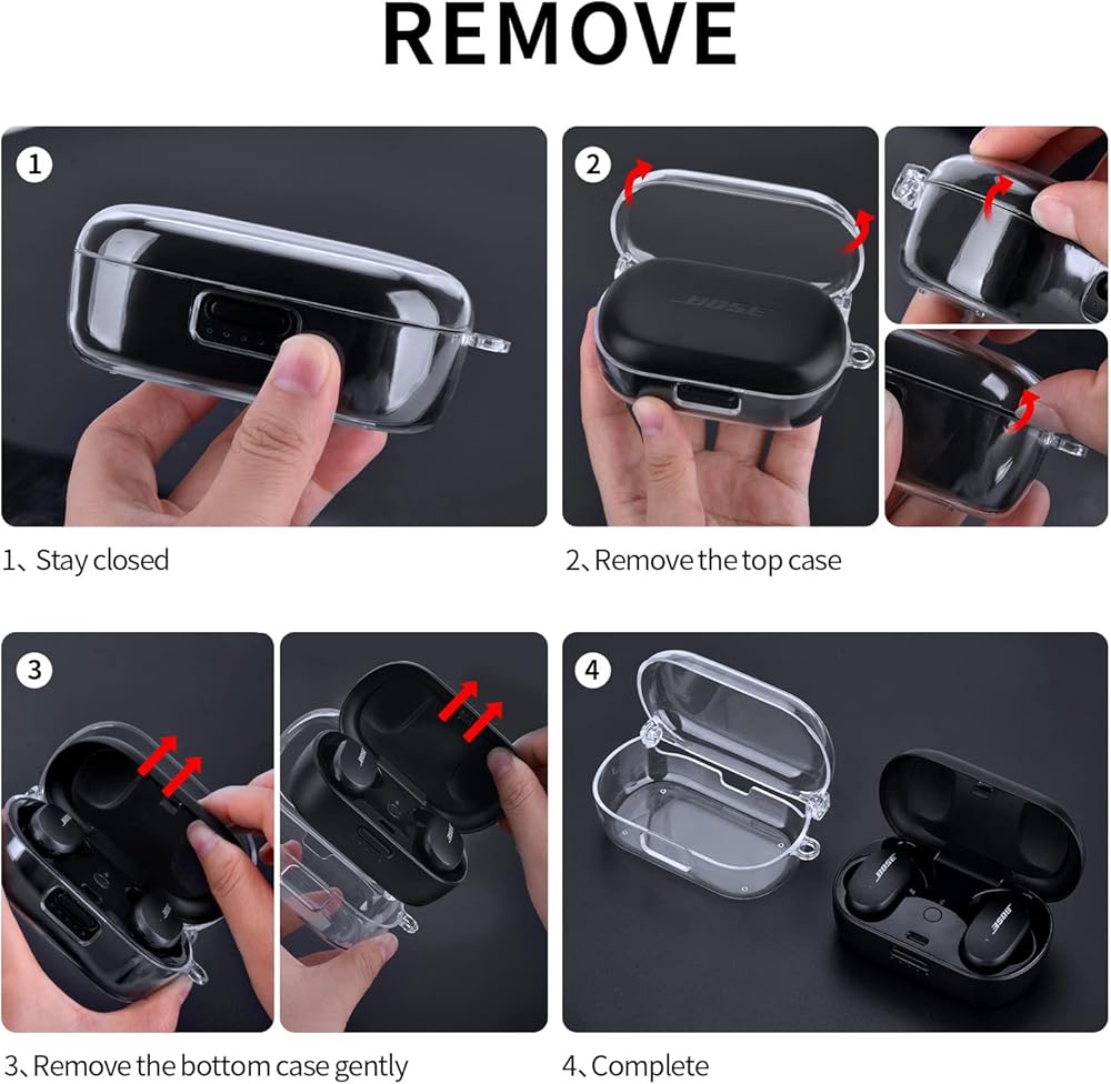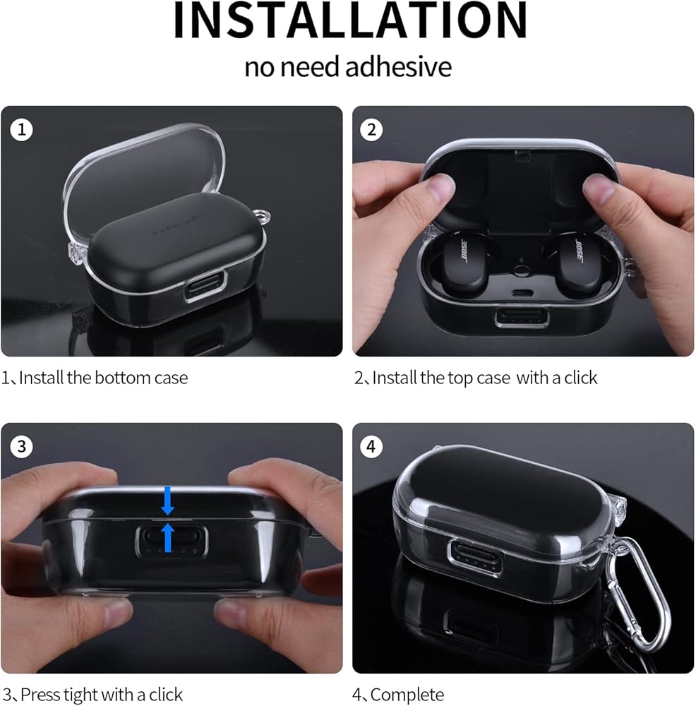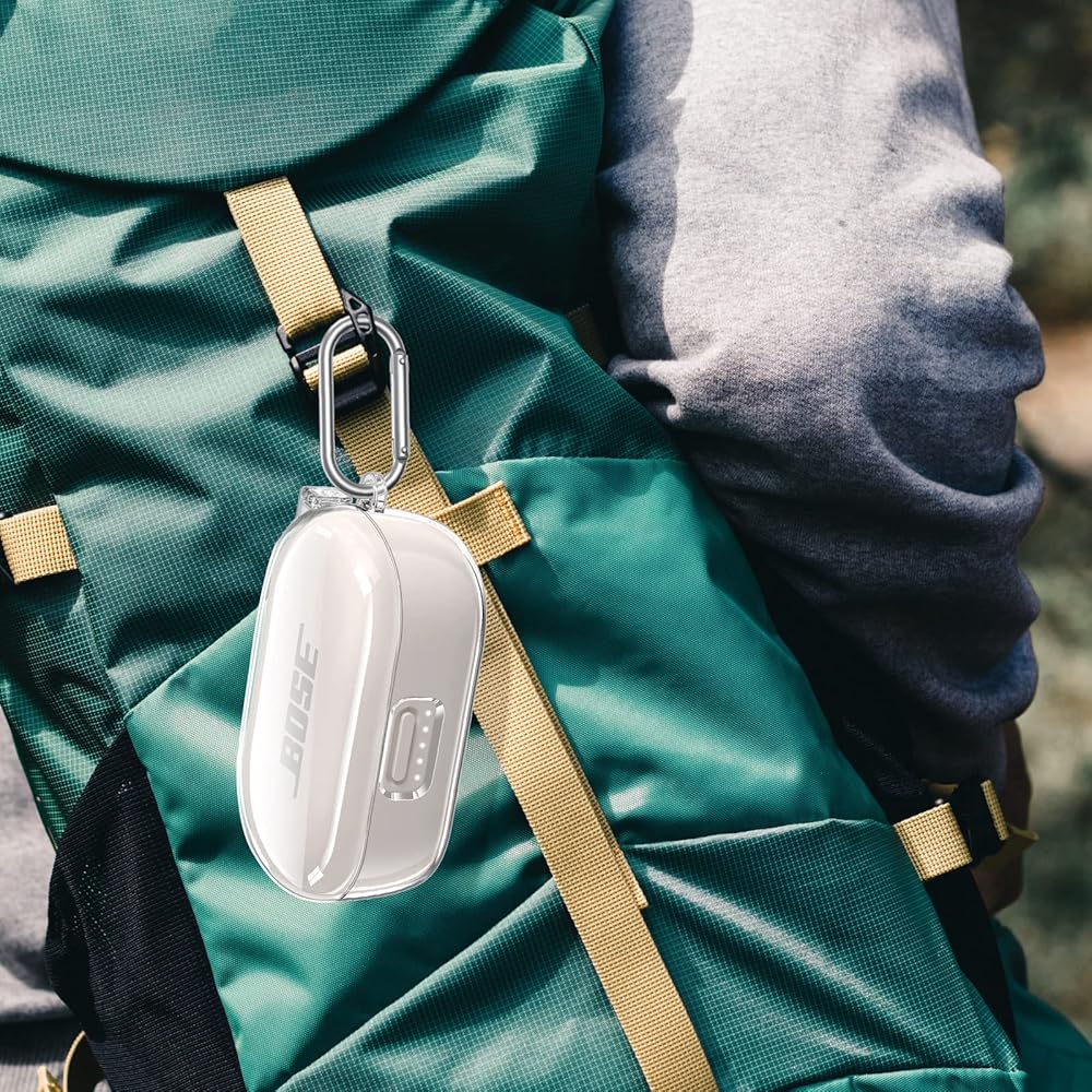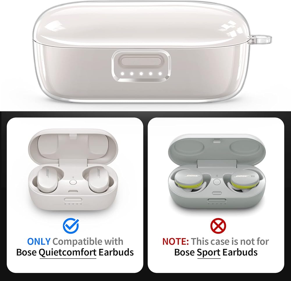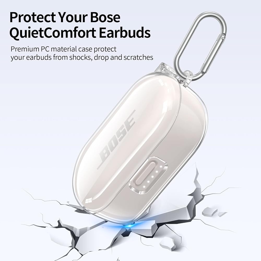 Compatible with Bose QuietComfort Earbuds Case Cover, Clear Hard Protective Case for Bose QuietComfort Noise Cancelling Earbuds with Keychain Accessories for Men Women (Clear)