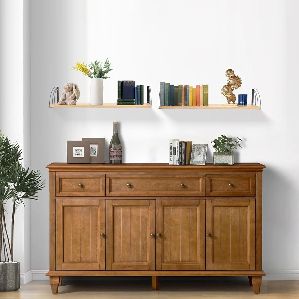 ✅Smooth and Water-Prof—The board surface of wooden shelves for wall is very smooth, polished by hand multiple times, and the transparent paint on the surface of floating shelves for books has a waterproof effect.